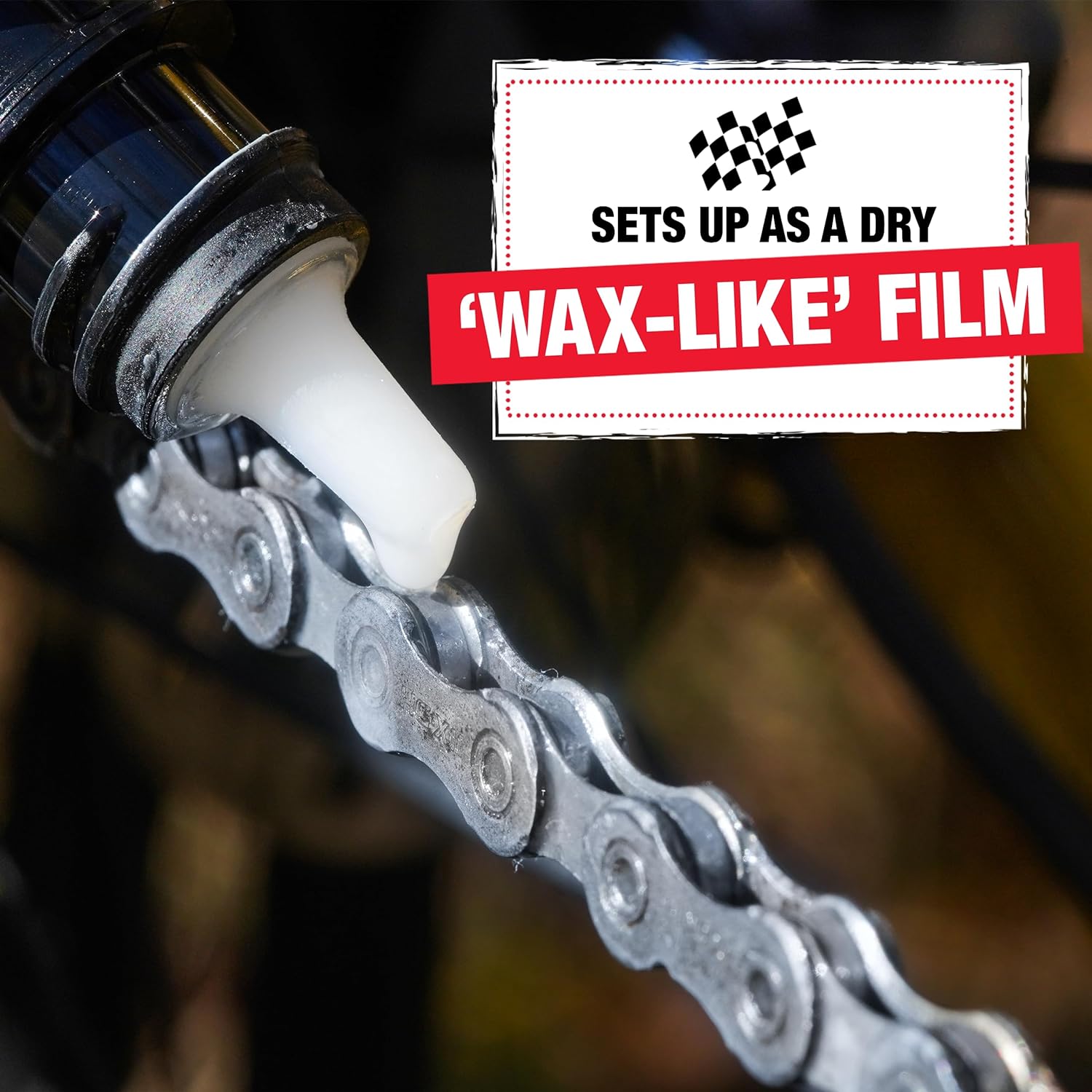 - Goes on wet and sets up with a dry 'wax-like' synthetic film that helps keep your chain clean by not absorbing excessive amounts grit, grime, or dust.
