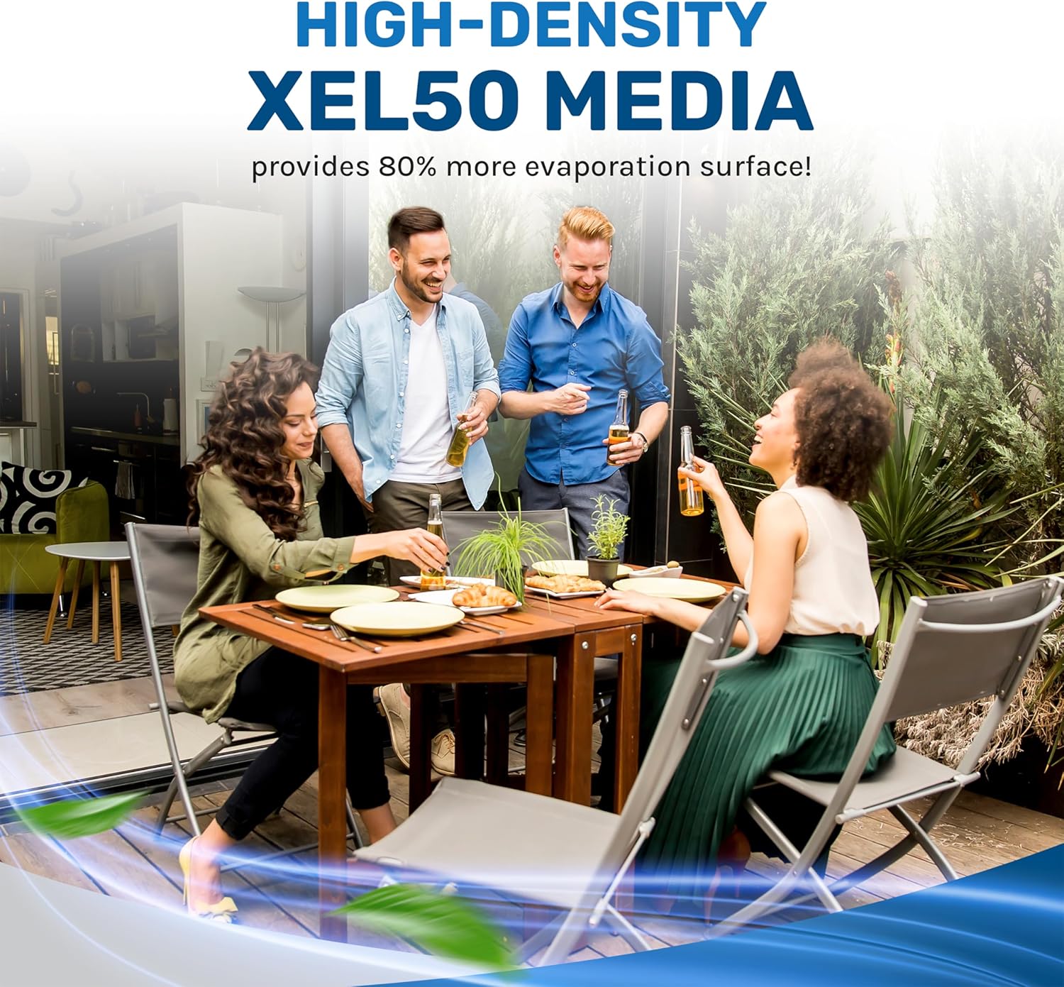 - Experience Superior Cooling: Embrace the evaporative air cooler capabilities of the Hessaire 3,100 CFM! This portable swamp cooler combats heat and dryness while extending air coverage through its unique 3-panel intake system.