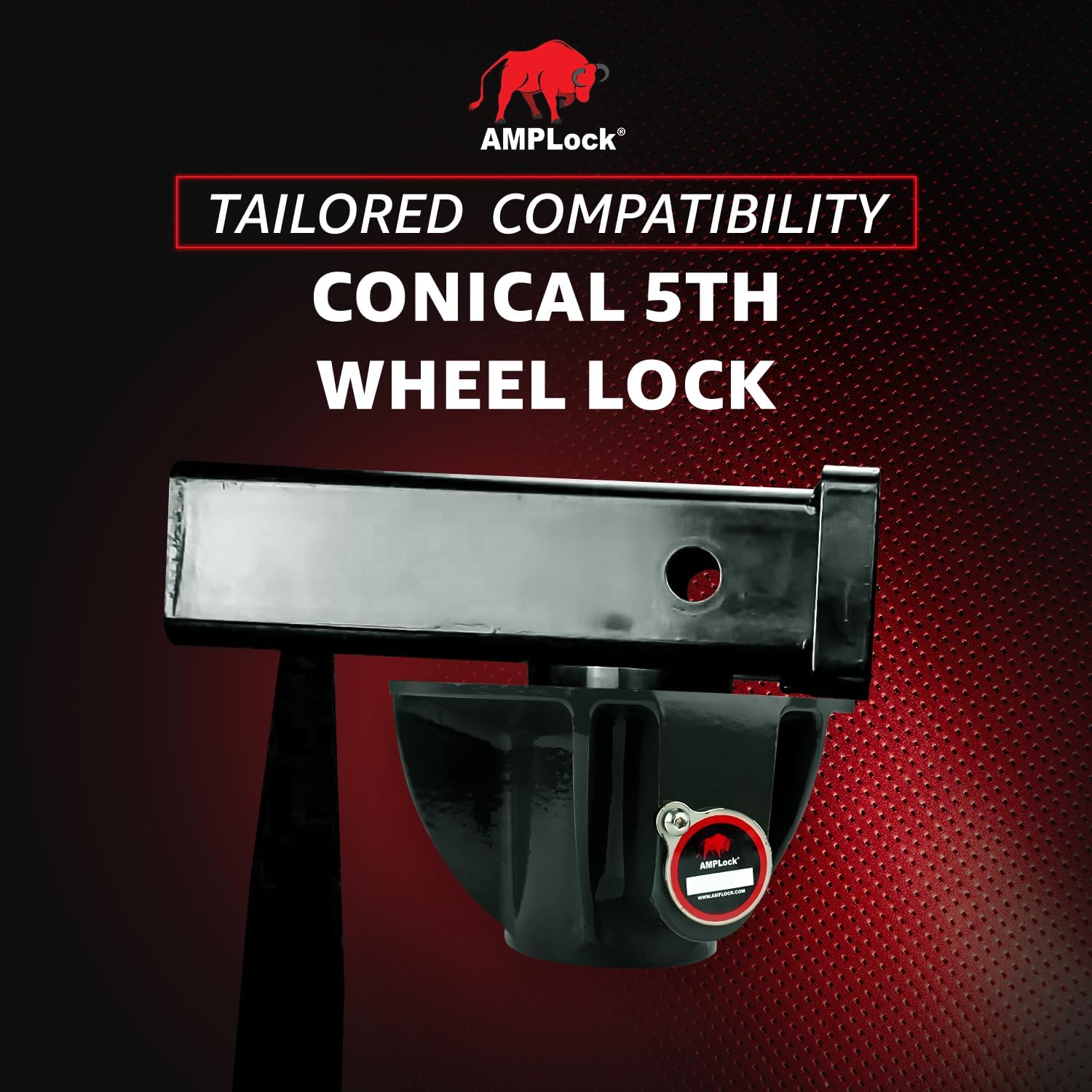 AMPLock - U-LPCVR Heavy Duty 5th Wheel Lock, Patented Cylinder Lock, Travel Trailer Security Conical 5th Wheel Lock, Reliable Heavy Duty 5th Wheel Lock, Anti Theft Trailer Protection & Security