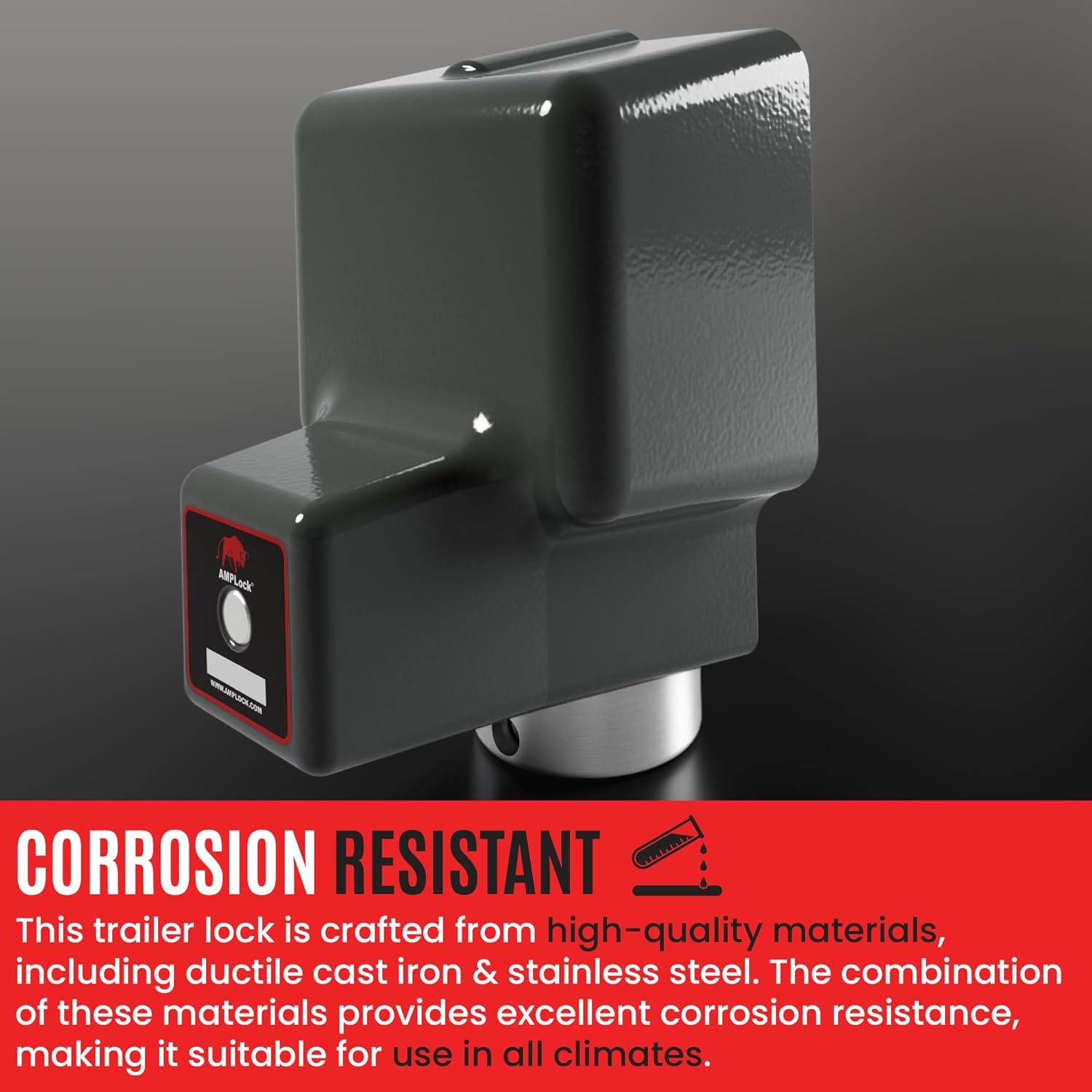 - INNOVATIVE ANTI-THEFT MECHANISM: With a trailer ball lock or lock for trailer hitch crafted from North American-sourced ductile cast iron and stainless steel, our product withstands aggressive attacks of trailer security. The ideal choice for those seeking boat trailer locks for the hitch, RV hitch lock for travel trailer, or a robust hitch coupler lock. As part of the AMPLock trailer lock set, it offers impressive resistance to forced entry, making it perfect for utility and cargo trailers.
