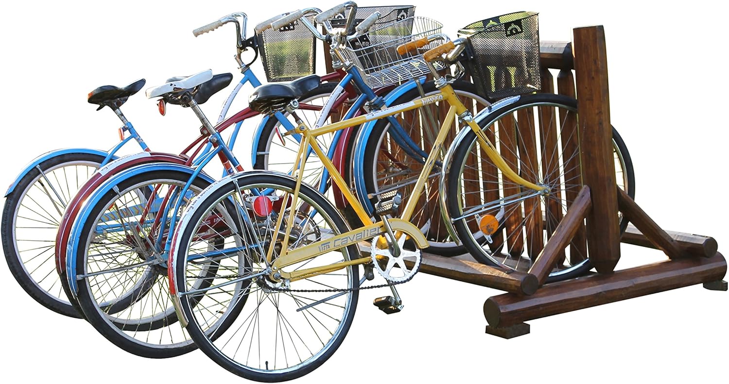 - ECO-FRIENDLY AND DURABLE MATERIALS: Crafted from inherently resistant Northern White Cedar logs, our outdoor free standing bike rack is built to withstand time and elements. Measuring 38" H x 38" D x 74" L, this bike stand floor combines durability with eco-conscious materials, ensuring a long-lasting and robust storage solution. The cedar wood construction adds a rustic charm while offering a low-impact, environmentally conscious choice for bike enthusiasts.