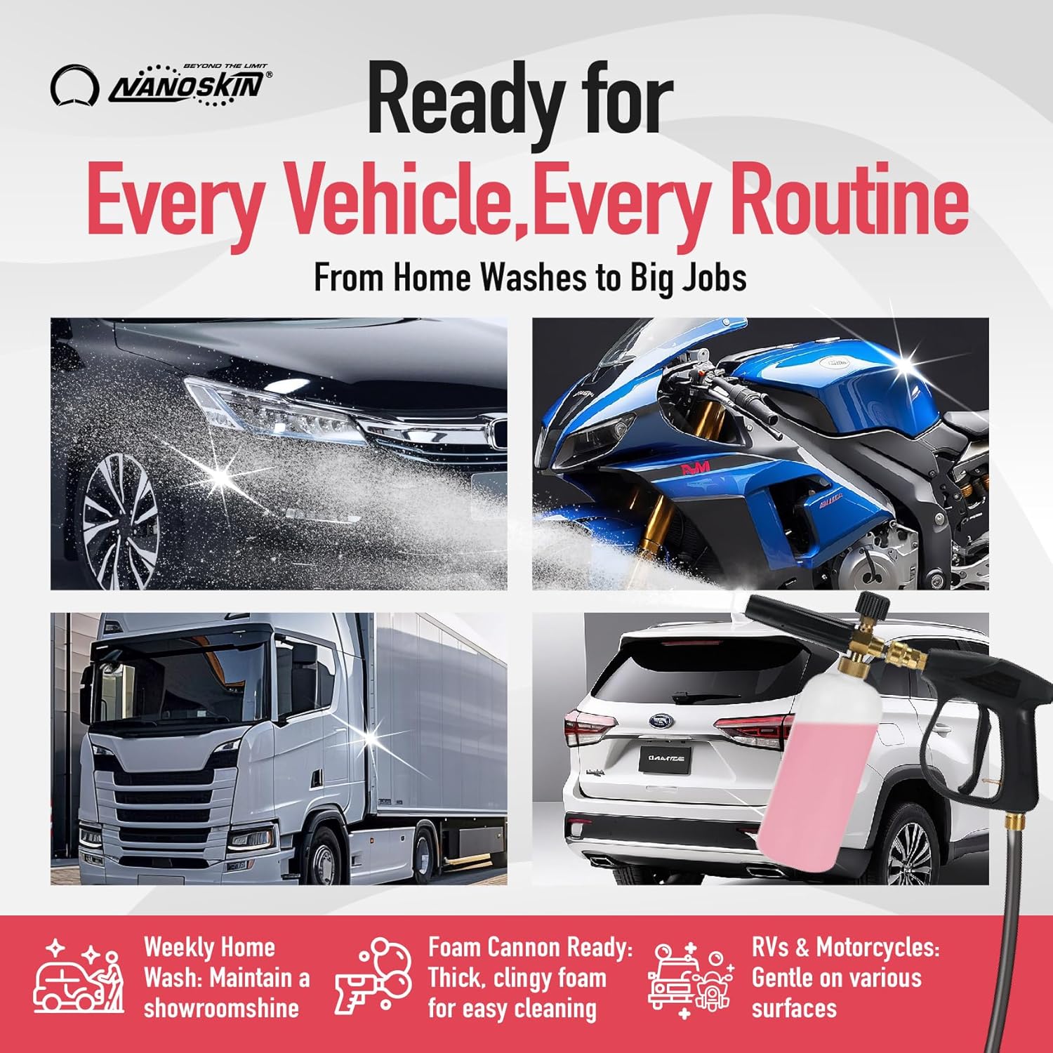 Nanoskin CHERRY SUDS Foaming Car Wash Shampoo 30 Gallons- Works with Foam Cannon, Foam Gun, Bucket Washes, Car Soap for Pressure Washer | Safe for Cars Trucks, Motorcycles, RVs & More | Cherry Scented