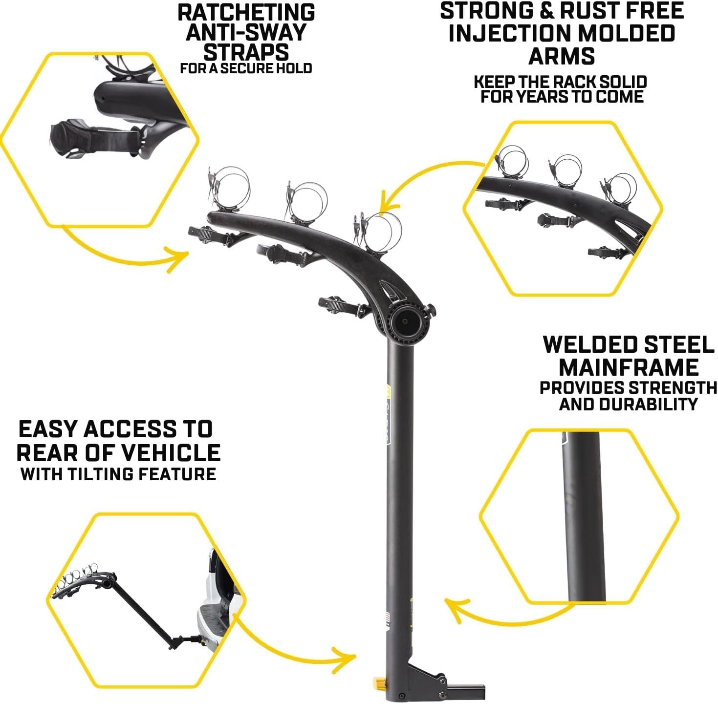 - TILTING FEATURE FOR TRUNK ACCESS – Easily tilt the rack down for quick access to your vehicle’s trunk, even when bikes are loaded. No need to remove the rack for convenience.