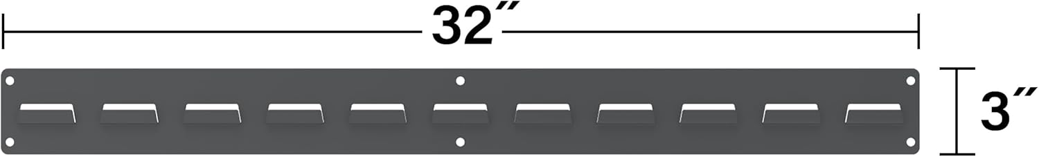 - HEAVY DUTY STORAGE RAIL - 16-gauge cold-rolled steel, with a high-quality powder-coated finish and an 80 lb. weight capacity; measuring 32-Inch W x 3-Inch H this heavy-duty garage wall storage system will last for years to come