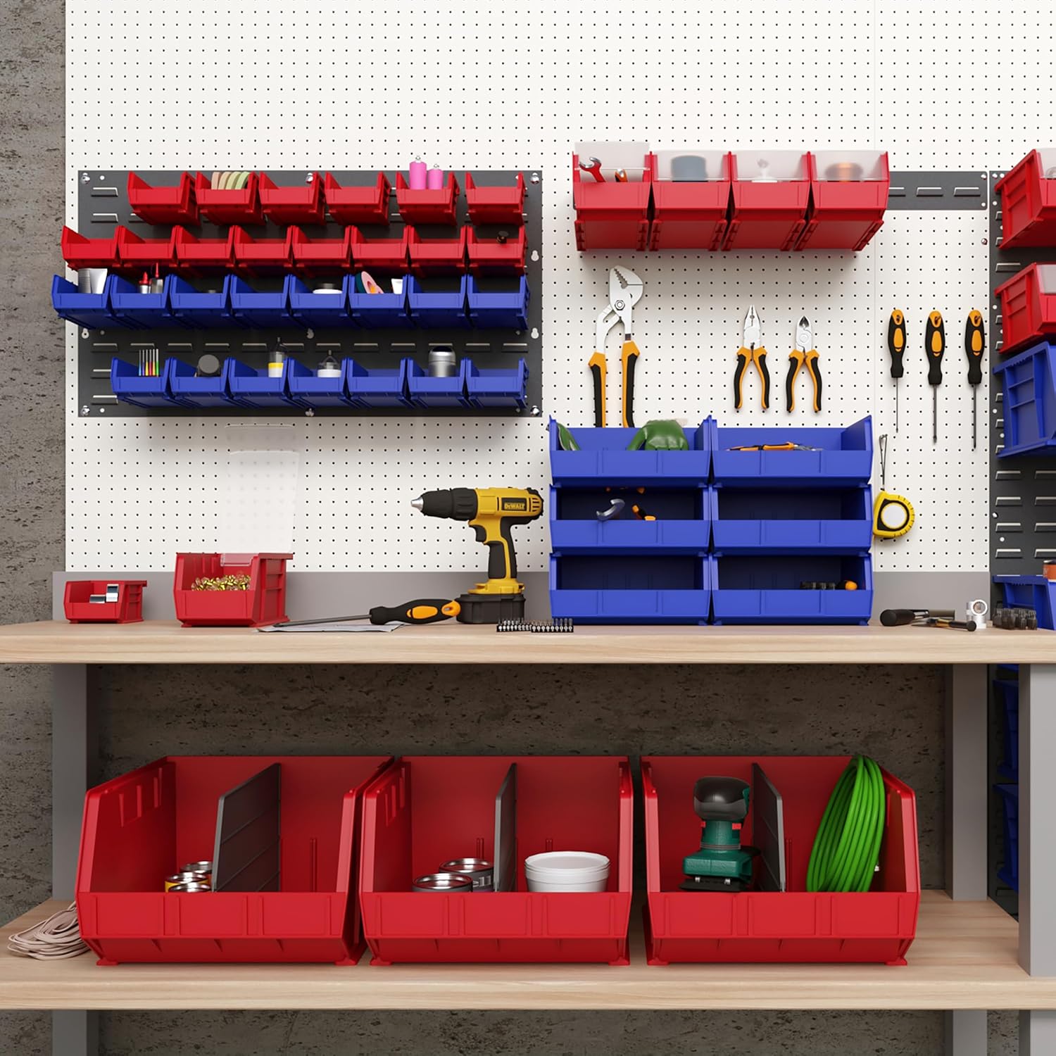 - VERSATILE HANGING STORAGE - This wall hanging panel can be used in a garage, workshop, warehouse, storage room, office, school, playroom and just about anywhere you need garage storage bins, a parts organizer, tool storage, and more