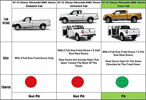 - Compatible with 2007-2013 Chevy Suburban 1500/2500/Avalanche, 2007-2013 GMC Yukon XL 1500/2500 (Fit XL Model Only,Not Fit Regular Yukon), 2007-2013 Chevy Silverado/GMC Sierra Crew Cab New Body Style Only (Not Fit Classic Body or Other Cab Models)
