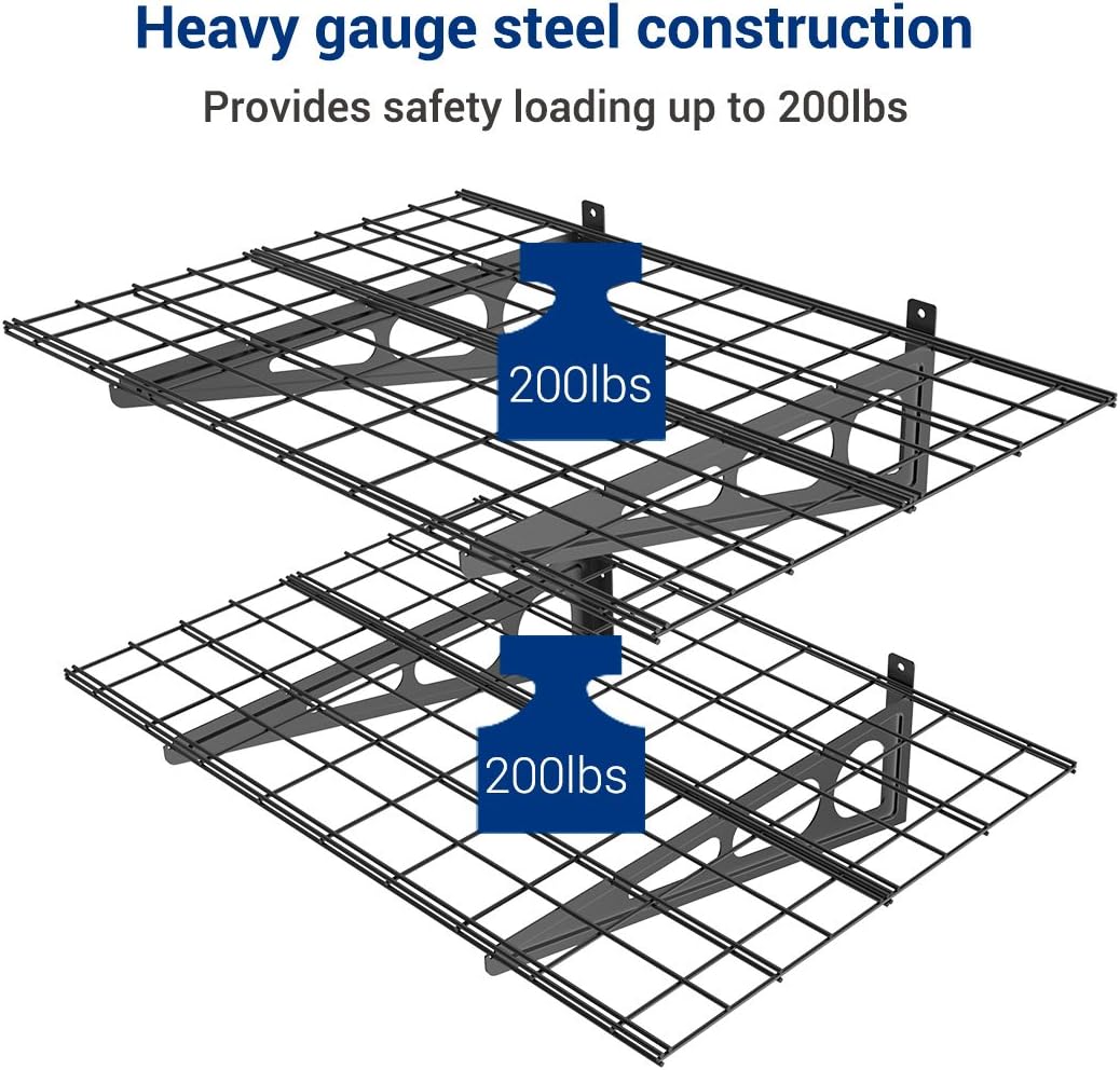 FLEXIMOUNTS 2 Pack 2x4ft Garage Shelving, Wall Shelf Garage Storage Rack, 24-inch-by-48-inch, Black