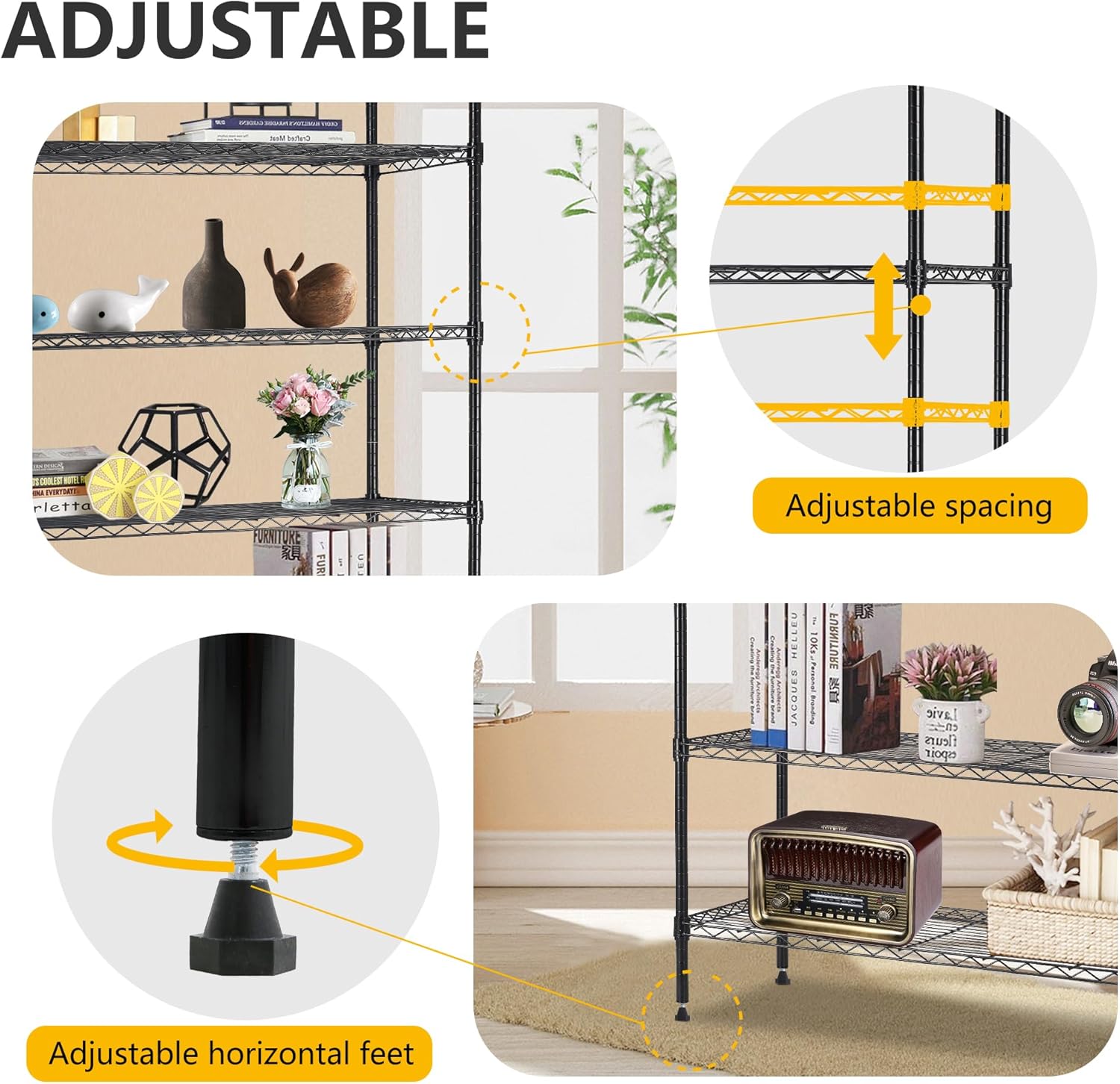 - √【ADJUSTABLE WIRE SHELF】: You can adjust the height of the storage shelves according to the size of the item.The spacing of each layer of this wire shelf can be adjusted.Shelves adjustable leveling feet allow the shelving unit to be placed on uneven ground--a simple twist is all it takes to stabilize.wire shelving unit wire shelf storage shelves.