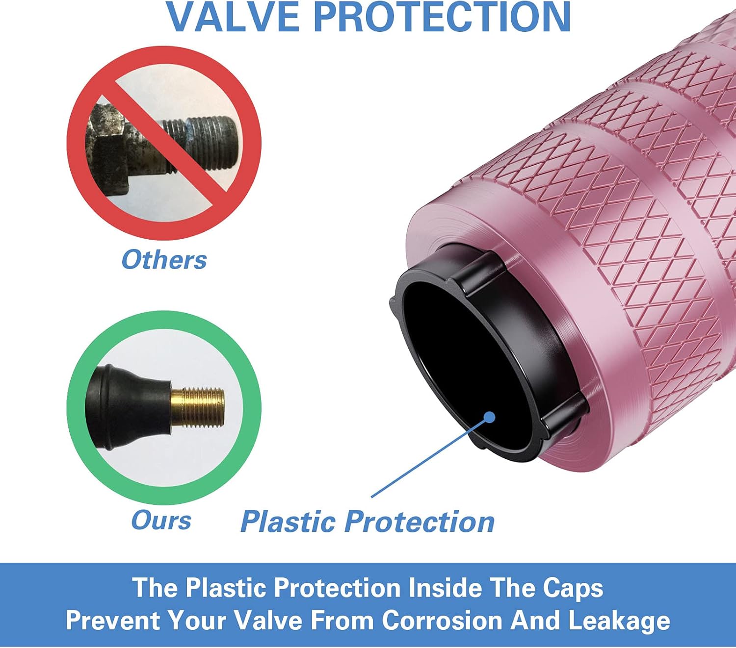 CKAuto Tire Valve Stem Caps, Pink, 4 pcs/Pack, Anodized Aluminum Tire Valve Cap Set, Corrosion Resistant, Universal Stem Covers for Cars Trucks Motorcycles SUVs and Bikes