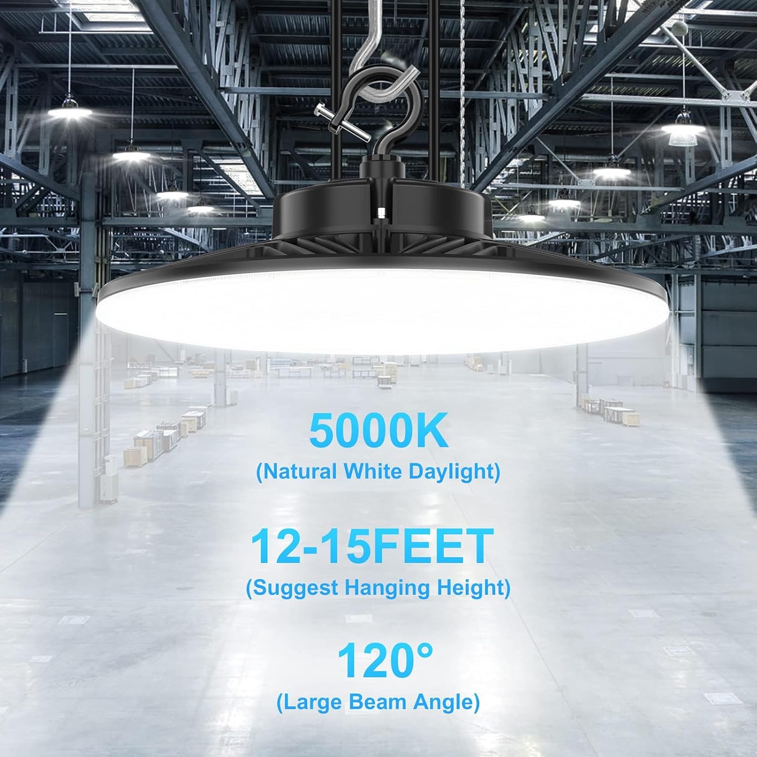 - ✅ Dimmable Compatibility & Flicker Free : The dimmable high bay led shop lights have smooth dimming range from 10-100%, which allows you to adjust the brightness of the lights according to your needs. The CRI>80 industrial LED ceiling light makes colors in your room appear richer, true and natural. No buzzing, no flickering