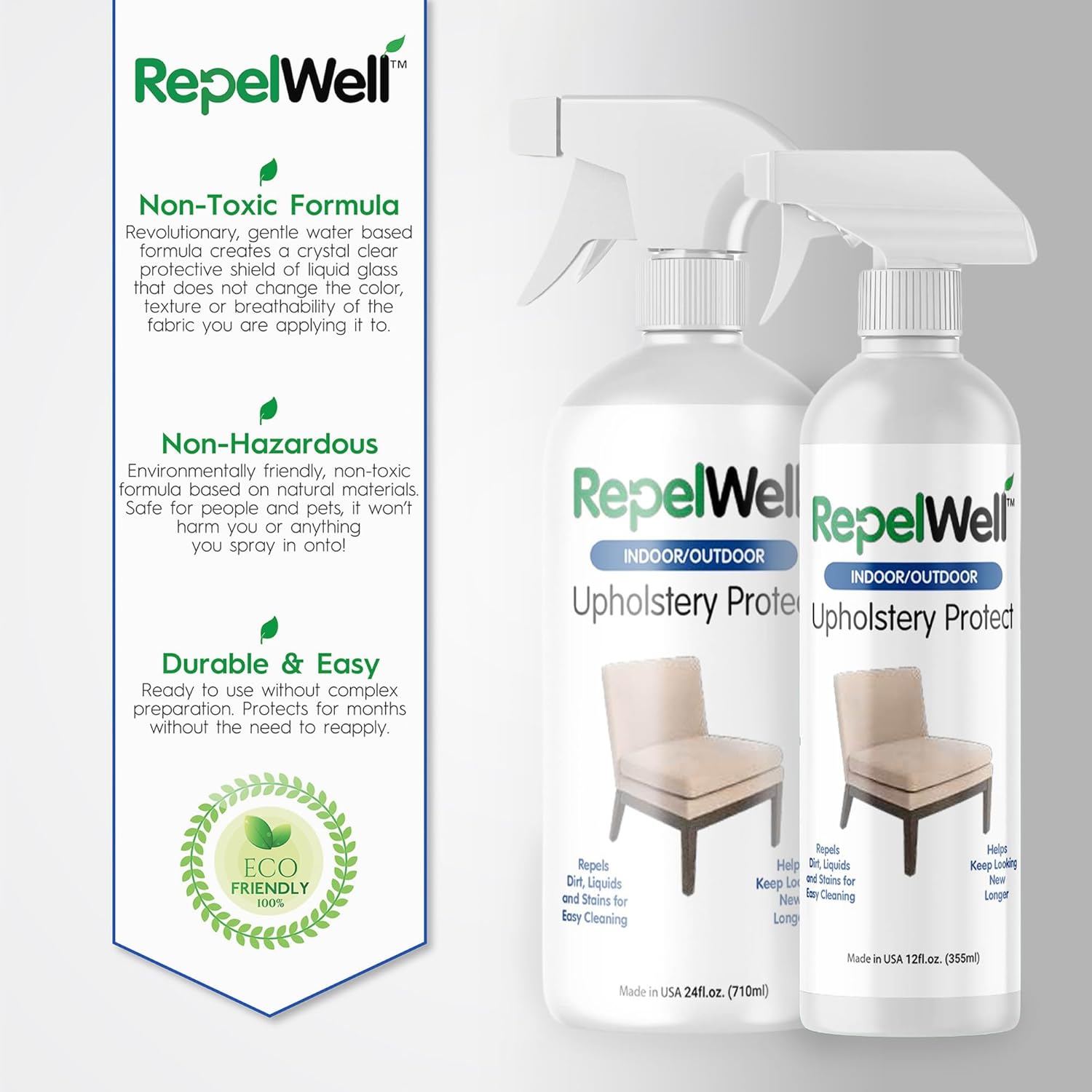 - ➤Includes (1) 12oz bottle of RepelWell Upholstery Protect