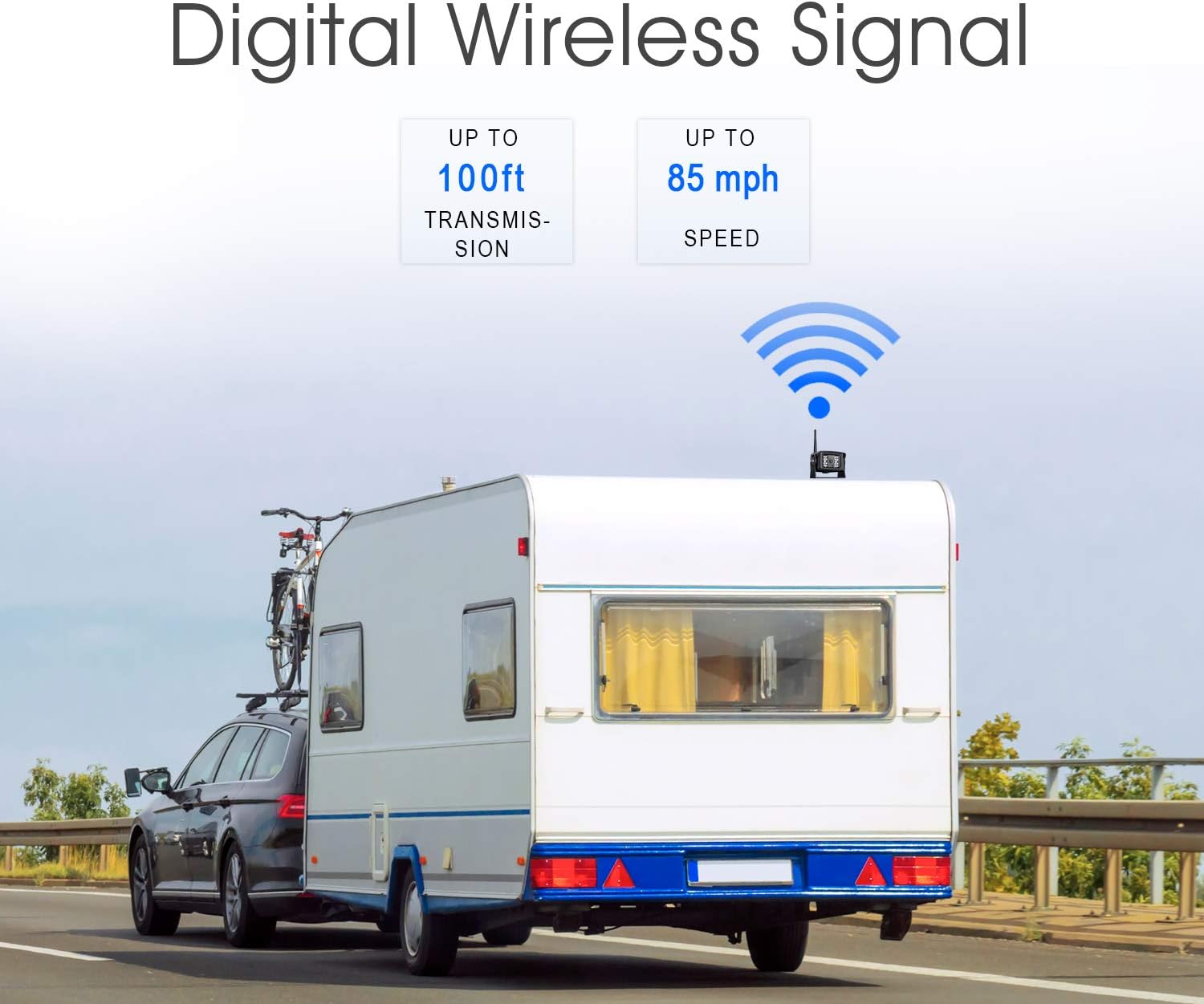 - đ ăBackup camera No InterferenceăTotally Upgrade 3nd Generation Digital Wireless Signal. Not only 65 mph there is no change, but also the camera wireless signal can stay smooth and clear even car speeds up to 70 mile.