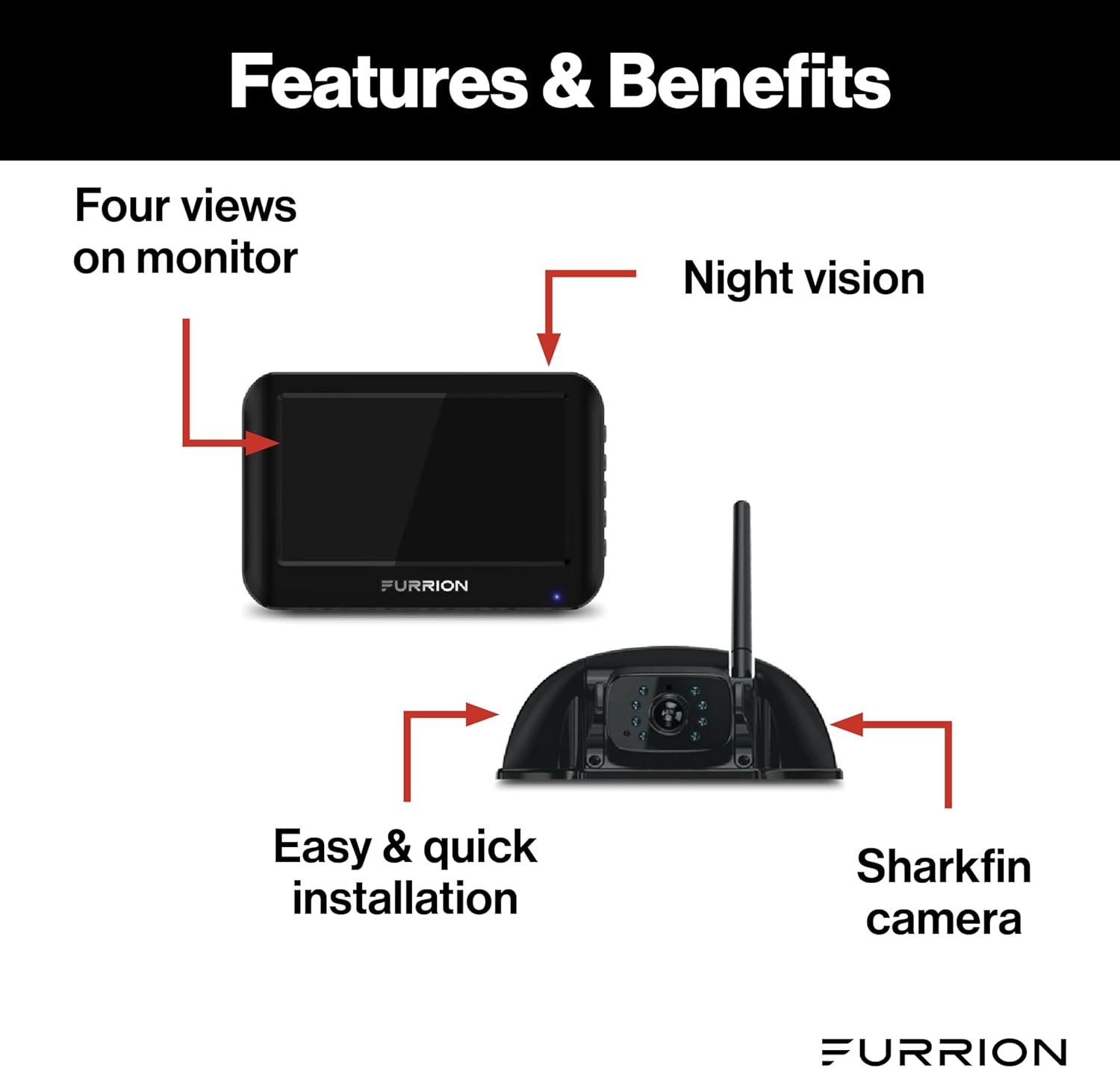 Furrion Vision S Wireless RV Backup Camera System with 4.3-Inch Monitor, 1 Rear Sharkfin, Infrared Night Vision, Wide-Angle View, Hi-Res, IP65 Waterproof, Motion Detection, Microphone - FOS43TASF