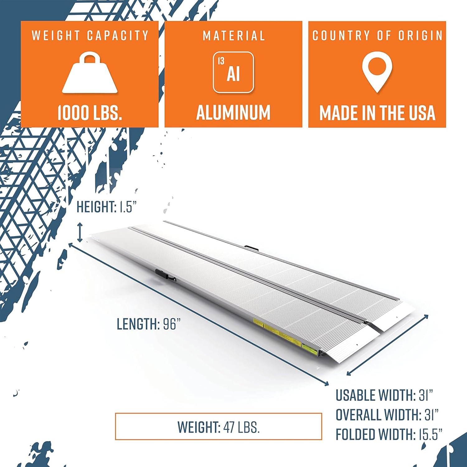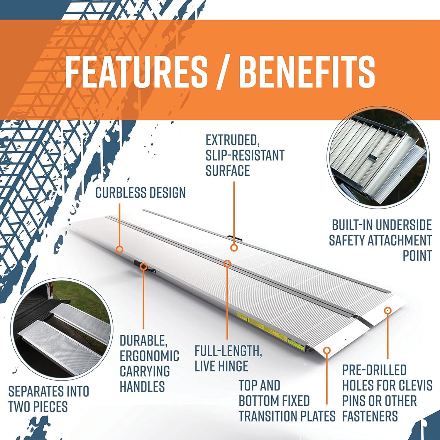 - Highly Portable: Easily foldable to a compact 15.48-inch width and can be conveniently stowed in a truck, trailer, shed, or van; Durable handles provide a comfortable grip for easy carrying without compromising the ramp's functionality