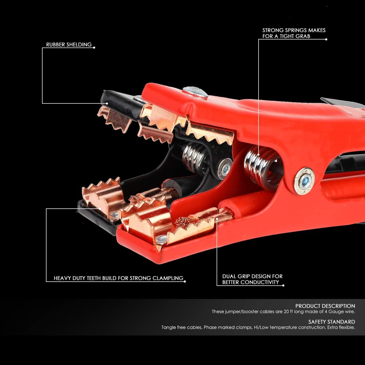 Auto Dynasty Heavy Duty 20 Feet 4 Gauge Booster Cable Power Jumper 500 AMP Emergency Battery Start Car/Motorcycle