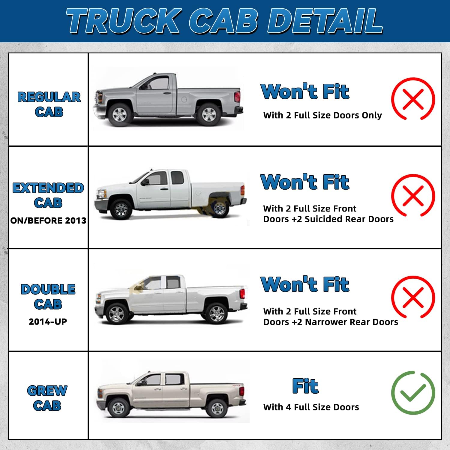 - Fit: 2007-2013 Chevy Avalanche; 2007-2014 Chevy Suburban 1500/2500; 2007-2014 GMC Yukon XL 1500/2500 (Not Fit Regular Yukon); 2007-2013 Chevy Silverado/GMC Sierra 1500 New Body Crew Cab; 2007-2014 Chevy Silverado/GMC Sierra 2500 HD/3500 HD Crew Cab