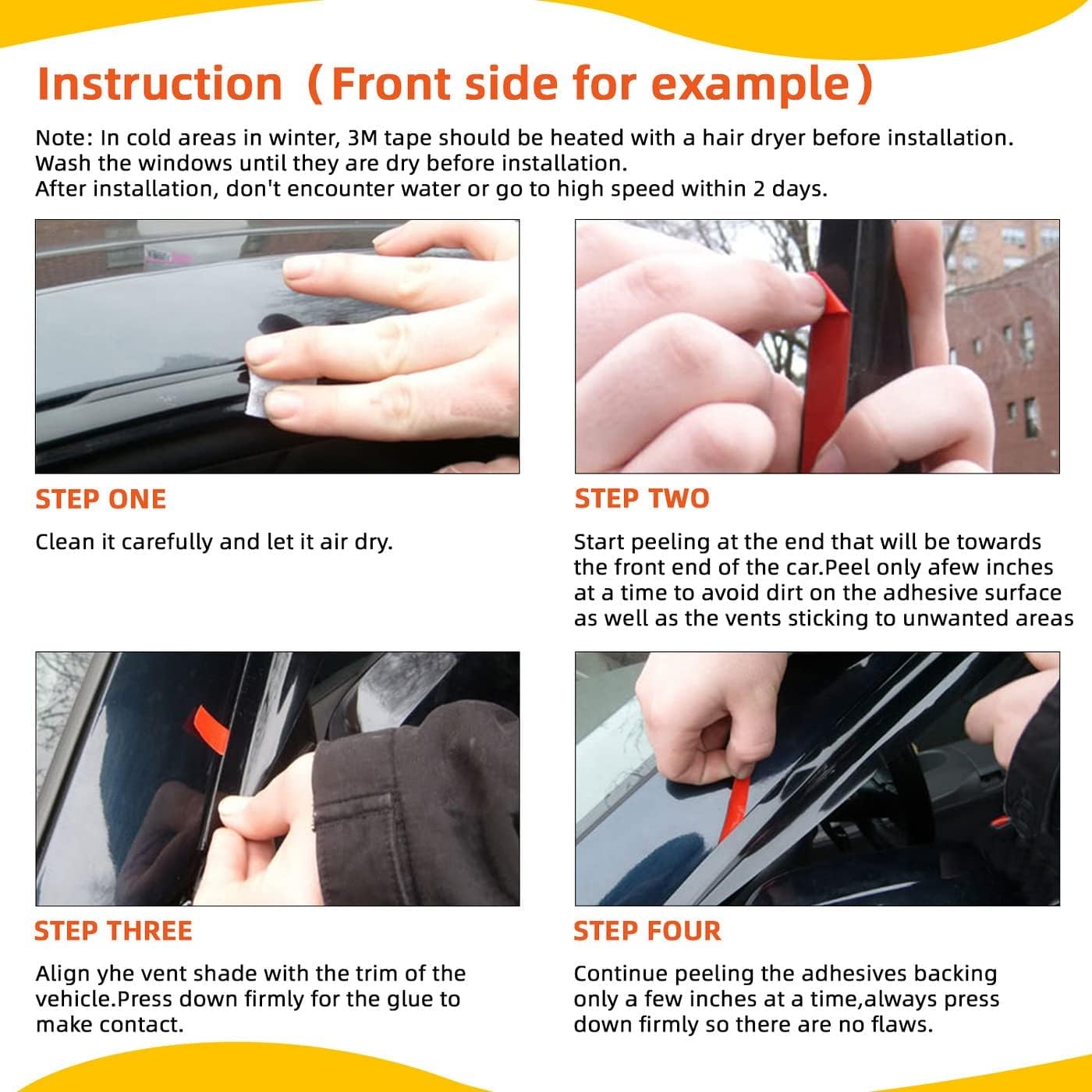 - Item-offered:4pcs for Front & Rear (Driver & Passenger) vent shade window visors with 3M Double-Sided Tapes.