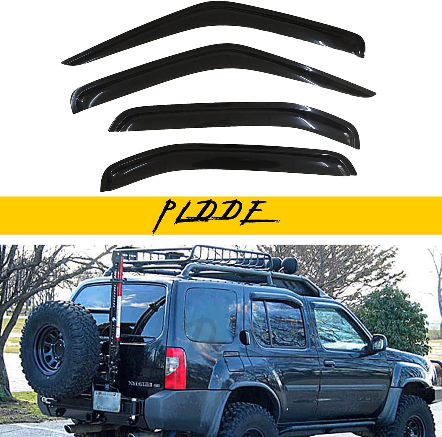 4 pcs Compatible with 2000-2004 Nissan Xterra Front+Rear Sun/Rain Guard Outside Mount Window Visors