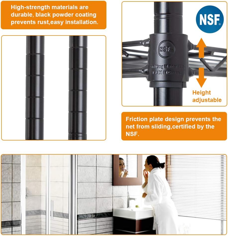 - âăLARGE AND STURDYăďźThe wire shelving unit provide an enormous amount of space and strong shelves. The metal shelf doesn't occupy too much space,but it can create more additional space. The storage shelves use durable steel construction,and to resist dirt buildup and corrosion. Maximum weight capacity per shelf is 150lbs when equally distributed on feet levelers.Maximum entire unit weight capacity is 220lbs when equally distributed on casters.wire shelving unit metal shelf storage shelves.