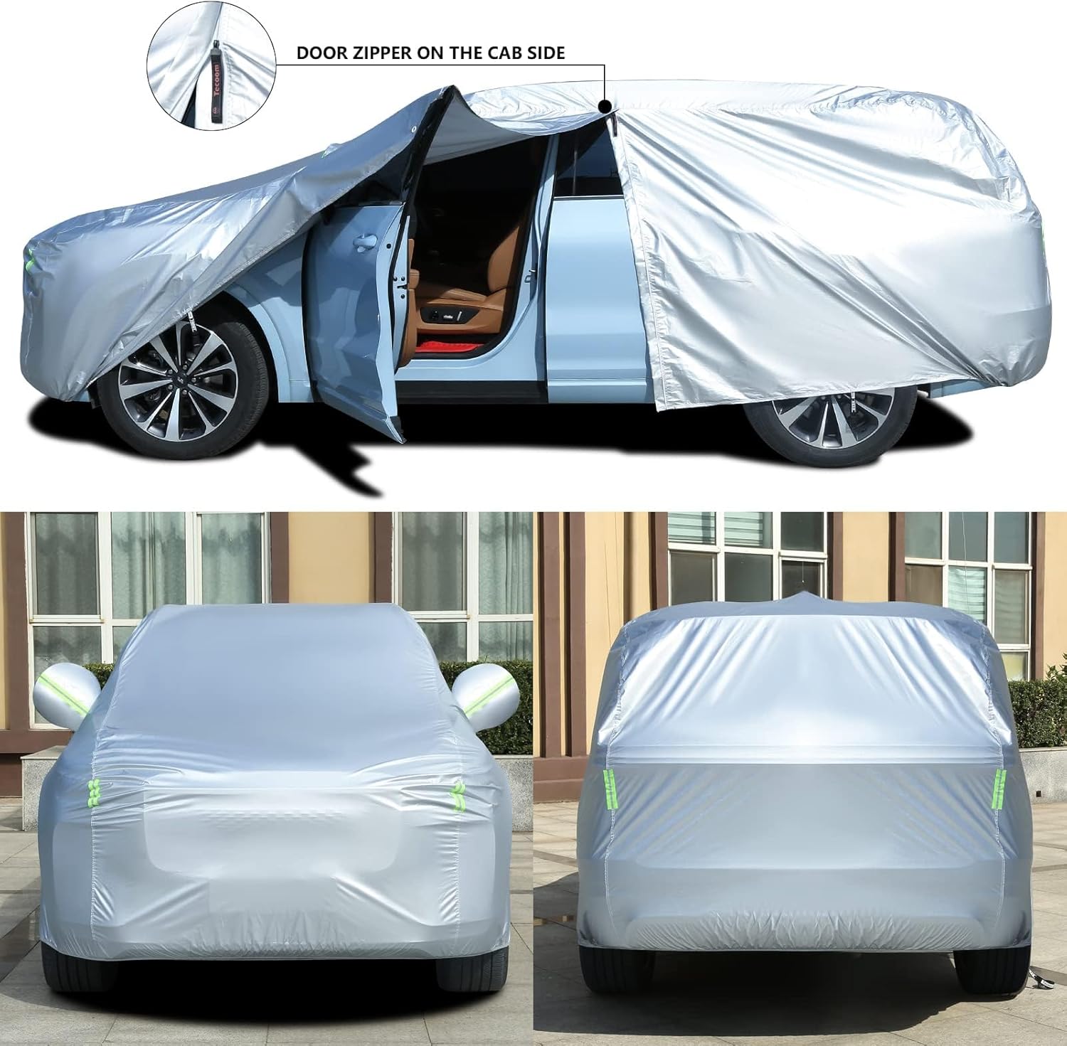 Tecoom Light Shell Breathable Material Classic Zipper Design Waterproof UV-Proof Windproof Car Cover with Storage and Lock for All Weather Indoor Outdoor Fit 191-205 Inches SUV