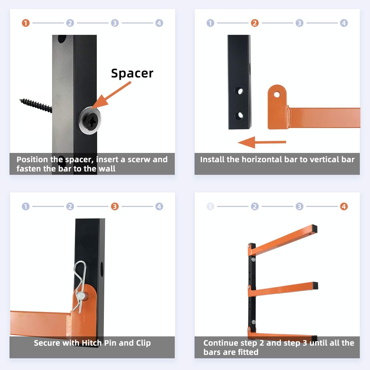 - EASY INSTALLATION & CUSTOMIZE - Wood storage racks Step-by-step instructions make it simple and easy for anyone to install this overhead garage storage rack in just minutes! Featuring 6 adjustable holes in the middle of the bar to allow you place arms in different locations to fit your storage needs