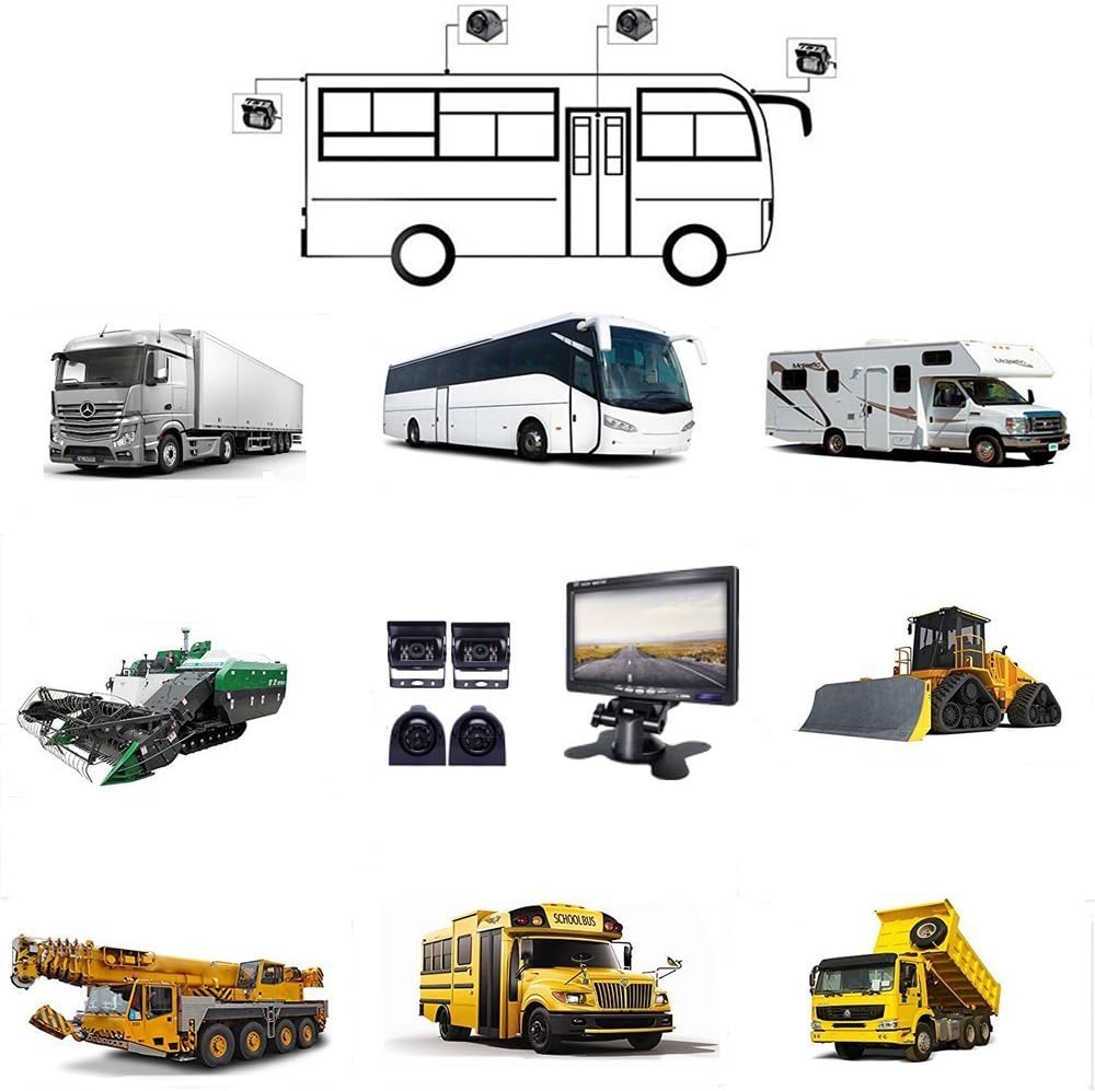 - 4PCS NIGHT VISION CAMERAS: 2pcs Rear View Cameras with 18 Infrared Lights and 7030 HD CMOS Sensor + 2pcs Side View cameras. The cameras are IP67 Waterproof for full potential on any season, 170 degree wide angle let you have a broader perspective