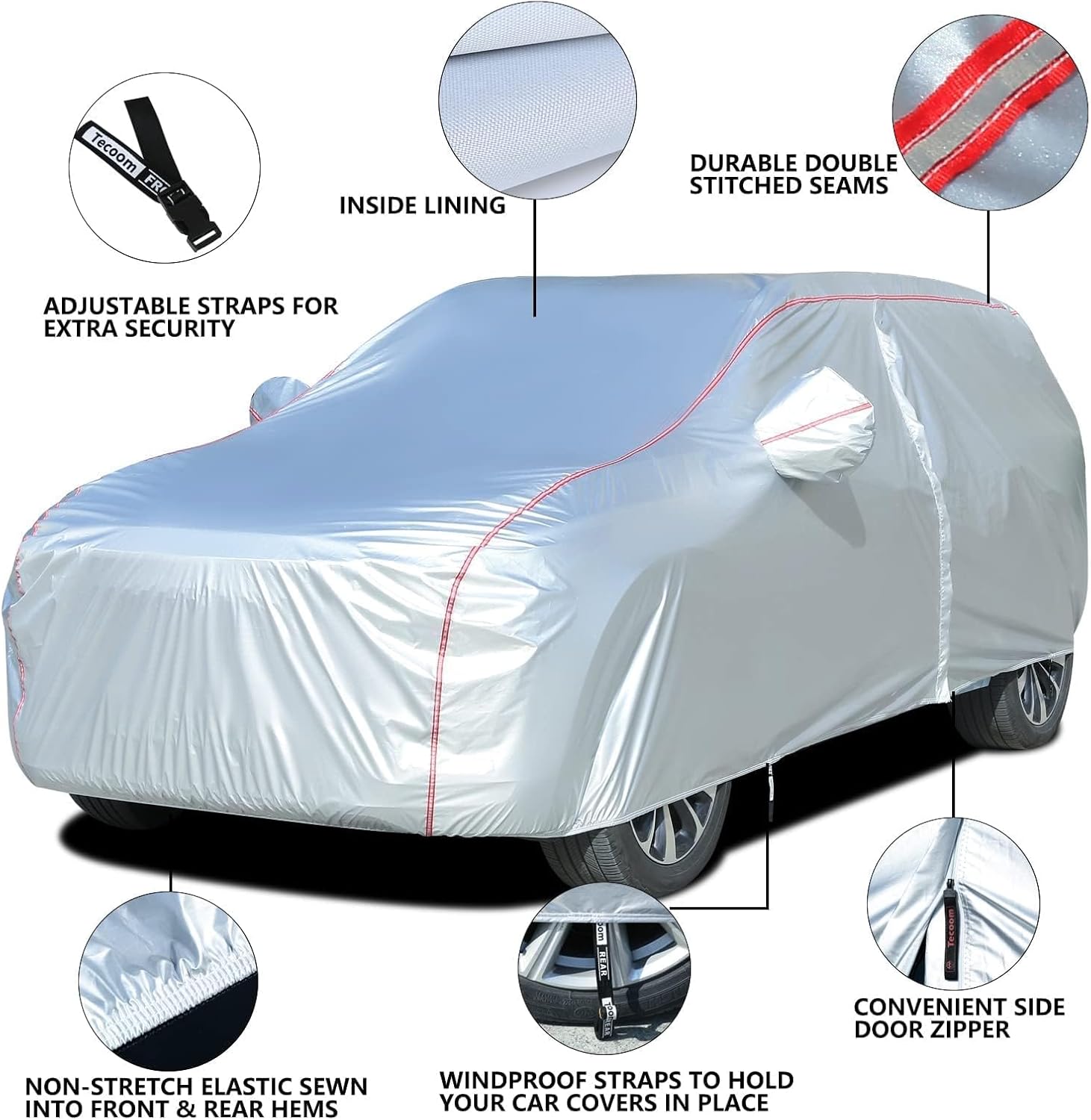 Tecoom Waterproof Car Cover for Tesla Model Y Honda CRV, UV Protection Car Covers for Toyota Corolla RAV4 Jeep, Door Zipper/Lock Windproof Car Cover All Weather Outdoor Indoor Fit 170-190 Inches SUV