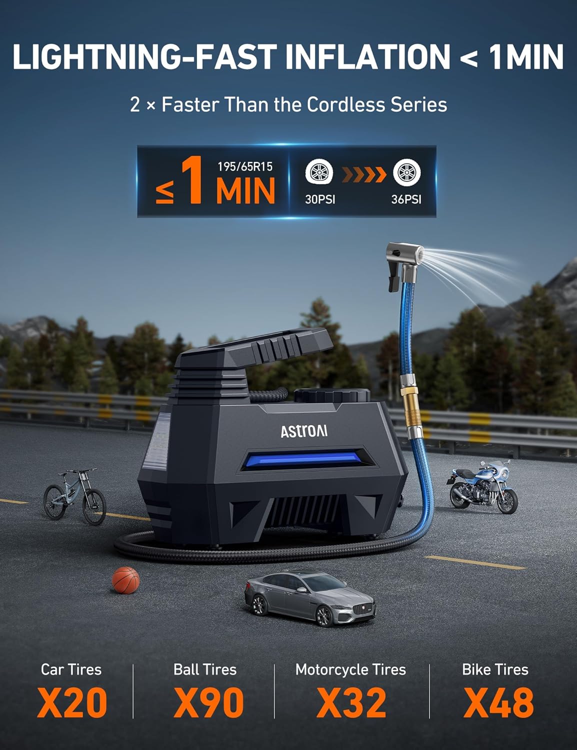 - TOUGHULTRA TECHNOLOGY, ENHANCED DURABILITY: This tire inflator is manufactured with AstroAI’s unique ToughUltra technology, so all of its core parts, including its cylinder, motor gears, and connection rod, are built using a powder metallurgy integrated molding technique. This revolutionary manufacturing process greatly enhances the inflator’s durability and increases its service life by 50%.