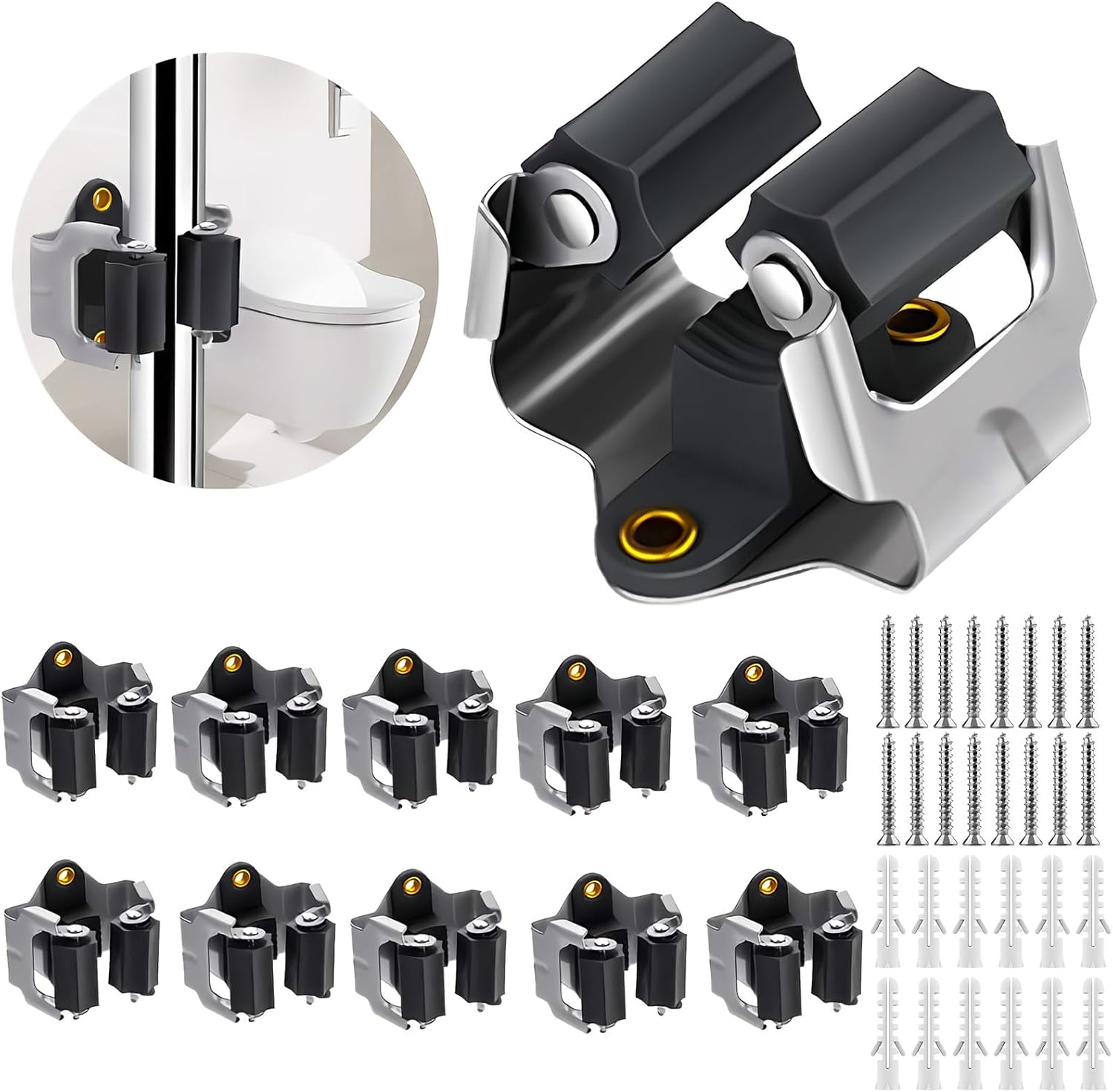 - PREMIUM QUALITY - The metal anti-rust Manganese Spring steel and the grip of the abrasion-resistant rubber keeps broom and dustpan,garden tools,yard tools,rake,shovels very well, with the anchor and screws supplied together, mop and broom holder wall mount can grip the mop handles for a long time without worrying the broom will fall off