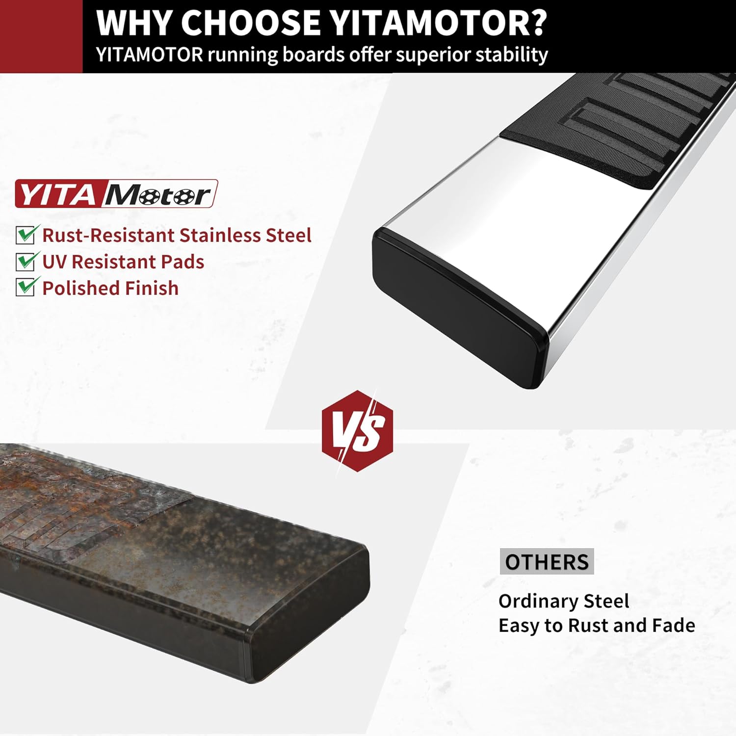 YITAMOTOR 6 inches Running Boards Compatible with 2007-2018 Silverado/GMC Sierra 1500 & 2500HD 3500HD Crew Cab, 2019 Silverado/Sierra 2500HD 3500HD Side Step Nerf Bar (Gas Engine ONLY)