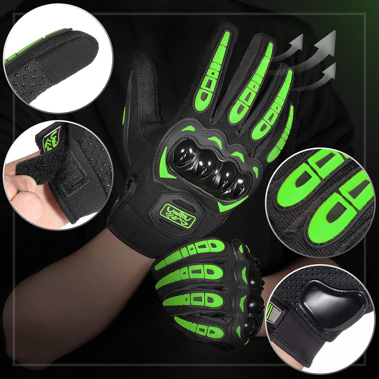 COFIT Motorcycle Gloves Breathable, Touchscreen Motorbike Gloves Anti-Slip with Good Grip Hard Knuckles Protection for Men Women Motocross, BMX ATV MTB Cycling, Road Racing - Green L