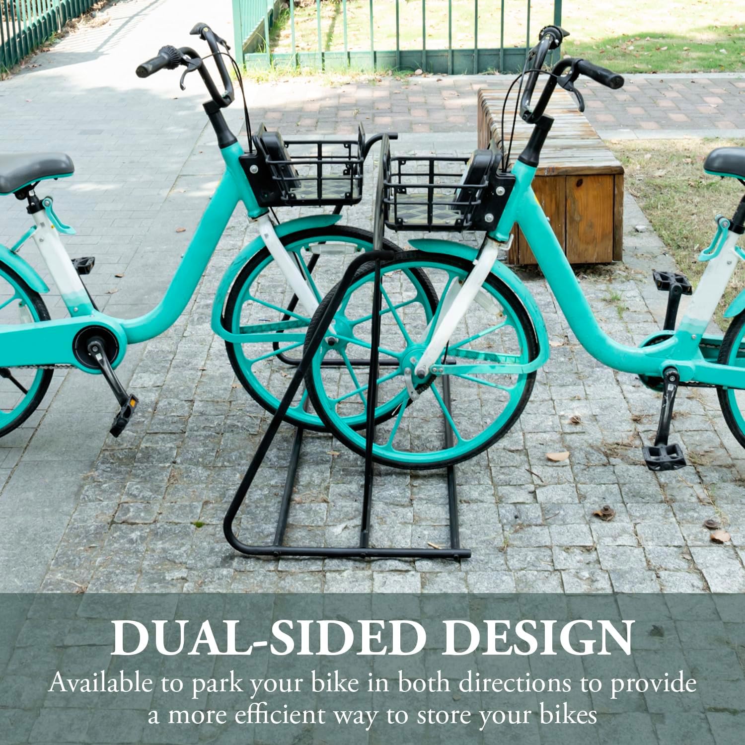 - Double-sided bicycle rack is constructed from high-quality steel in black for a modern elegant touch to a practical solution