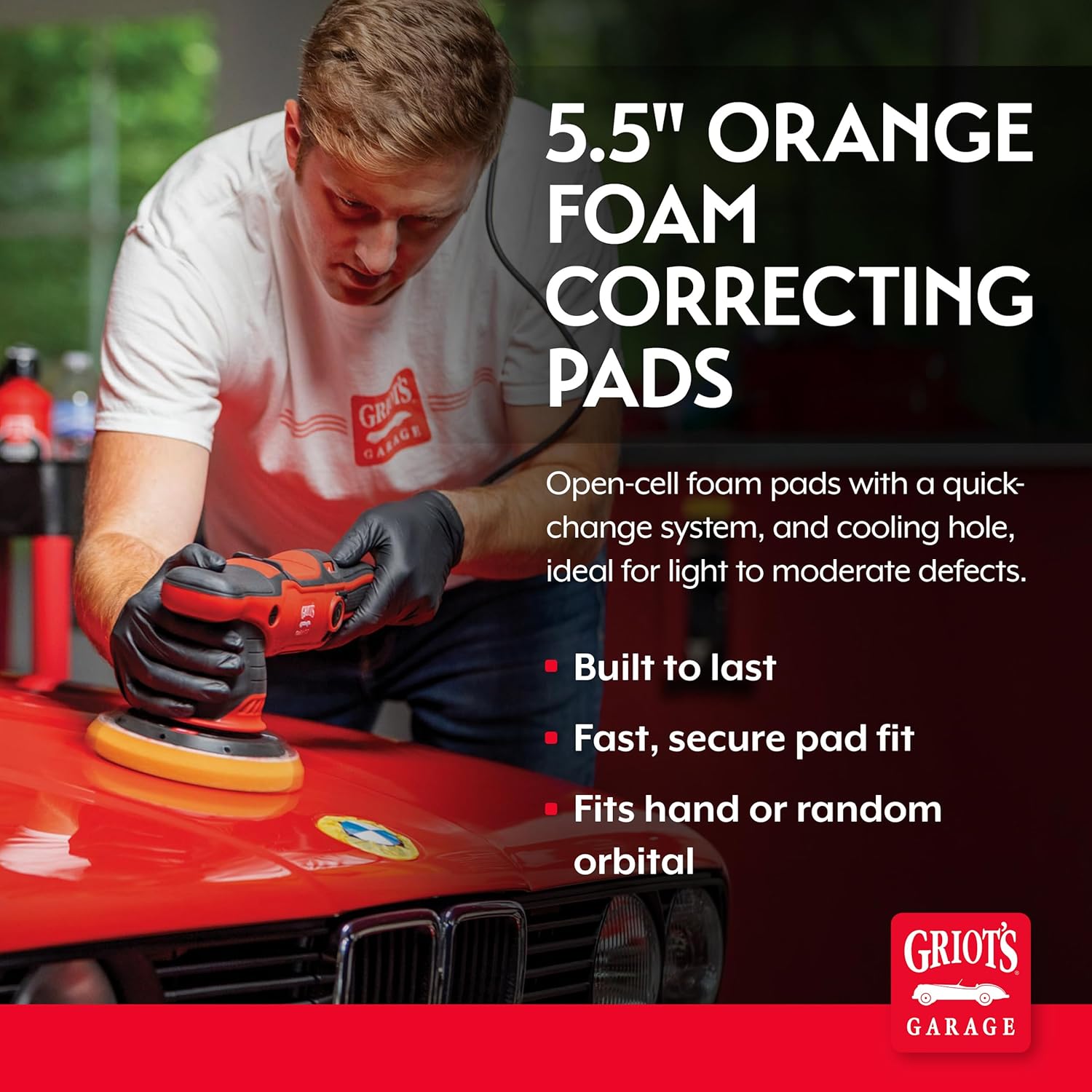 Griot's Garage Orange Foam Correcting Pads for Car Polishing and Detailing, Removes Light to Moderate Paint Defects, Durable, Machine-Washable, 10516, 5.5", Set of 2