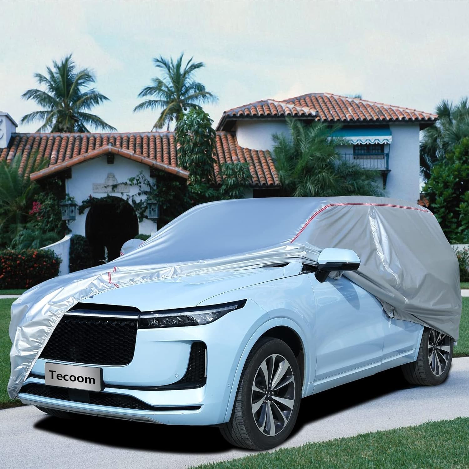 Tecoom Hard Shell Zipper Design Waterproof UV-Proof Windproof Car Cover for All Weather Indoor Outdoor Fit 206-215 Inches Full-Size SUV/Van