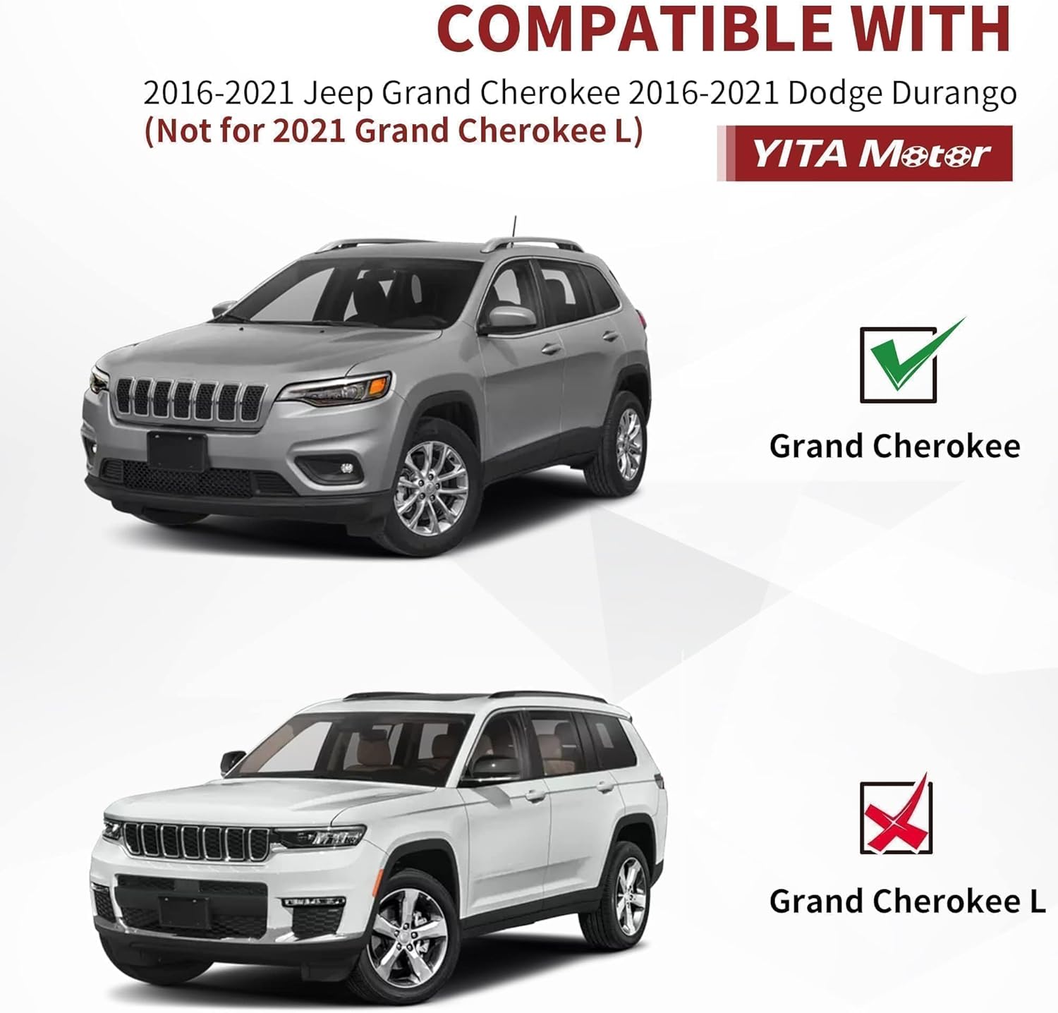 - Custom Fit: These floor mats are fit for 2022 Jeep Grand Cherokee WK, 2016-2021 Jeep Grand Cherokee/Dodge Durango, NOT fits for Grand Cherokee L,does NOT fit for Durango 2nd row bucket seating type. 3D laser scanning technology giving the front and back fully protection. Not for vehicles with vinyl floors. Please take out old floor mats before installing new floor liners.