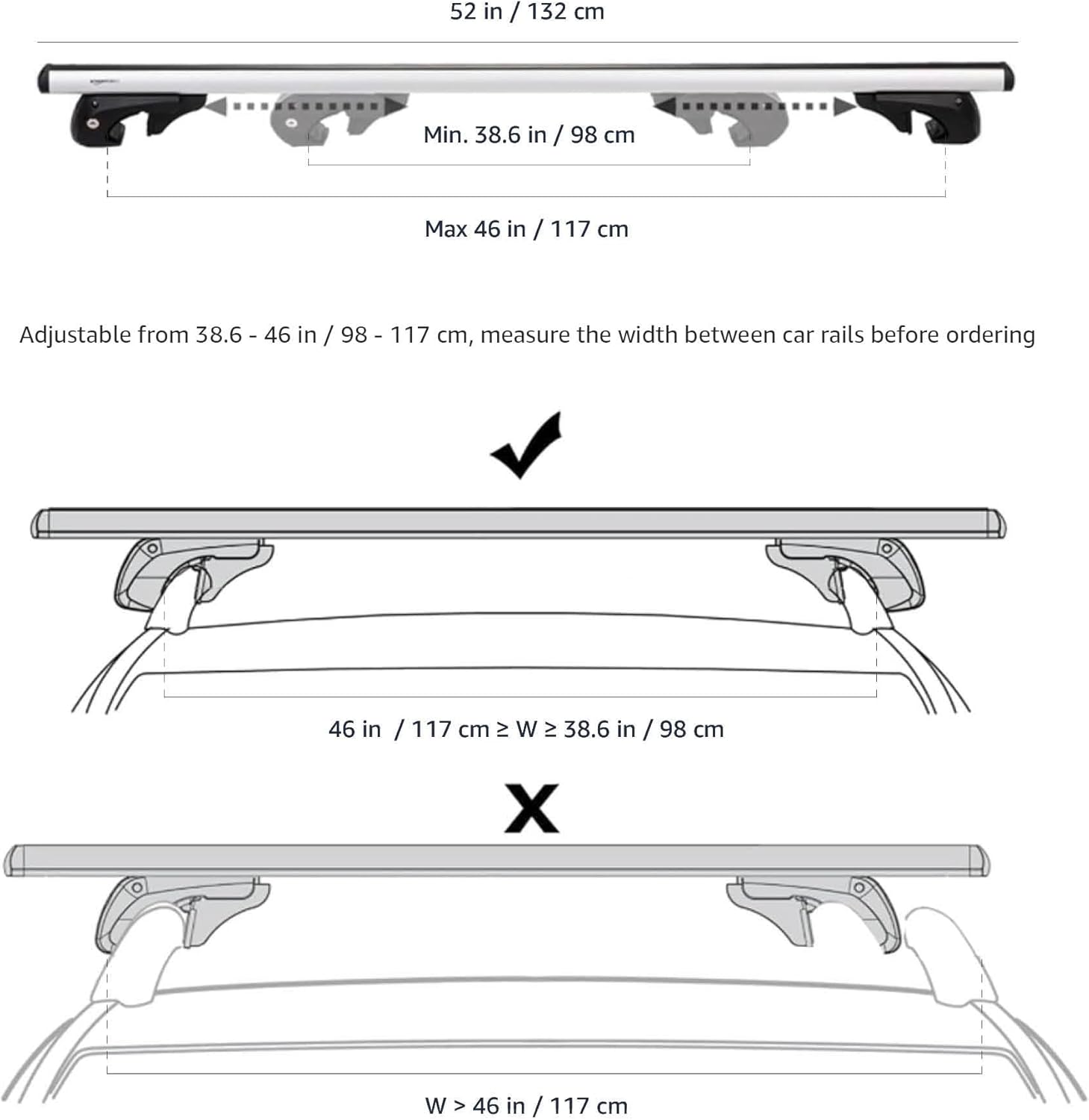 Amazon Basics Cross Rail Roof Rack, 52 inches, Fits up to 46" Spans between Raised Side Rails with Gap, Pack of 2, Black/Silver