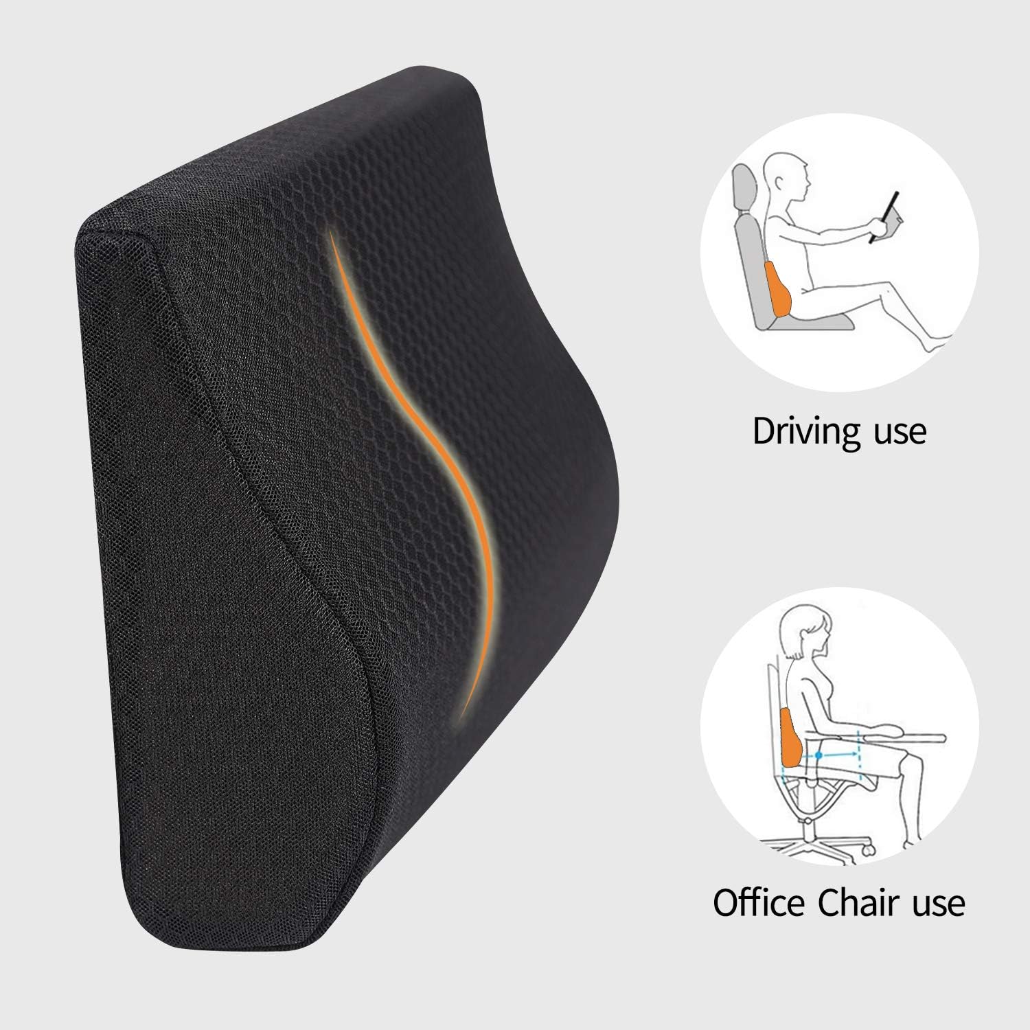 Memory Foam Lumbar Support Pillow for Car - Lower Back Support Cushion for Driving, Back Pain Relief for Car Seat, Office Chair, Wheelchair (Black)