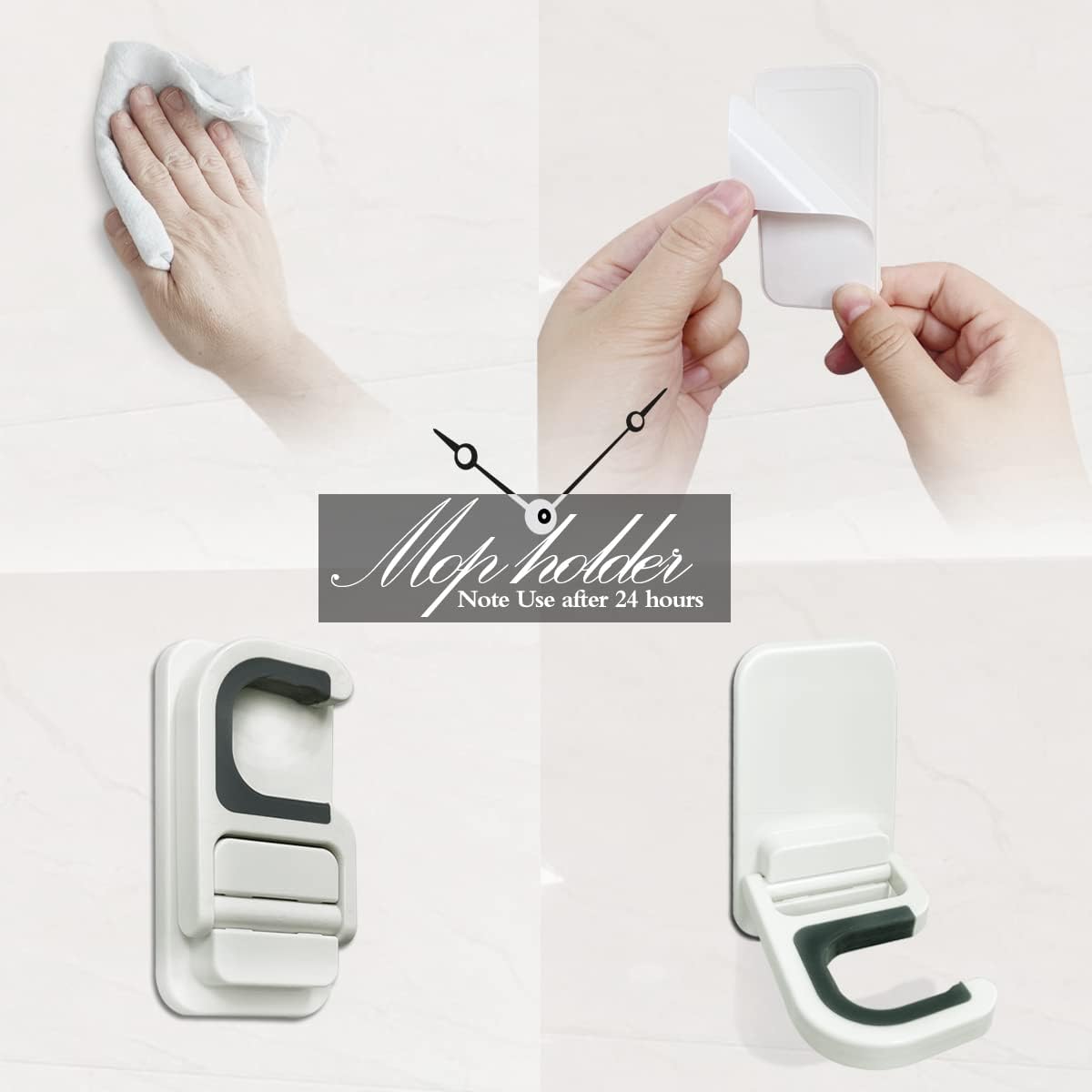 - Self-adhesive mop holder, no drilling needed: Easily install this broom holder wall mount self adhesive—just peel and stick on smooth, dry surfaces such as tile, glass, or metal. No tools, no damage to your walls, making it renter-friendly and convenient.