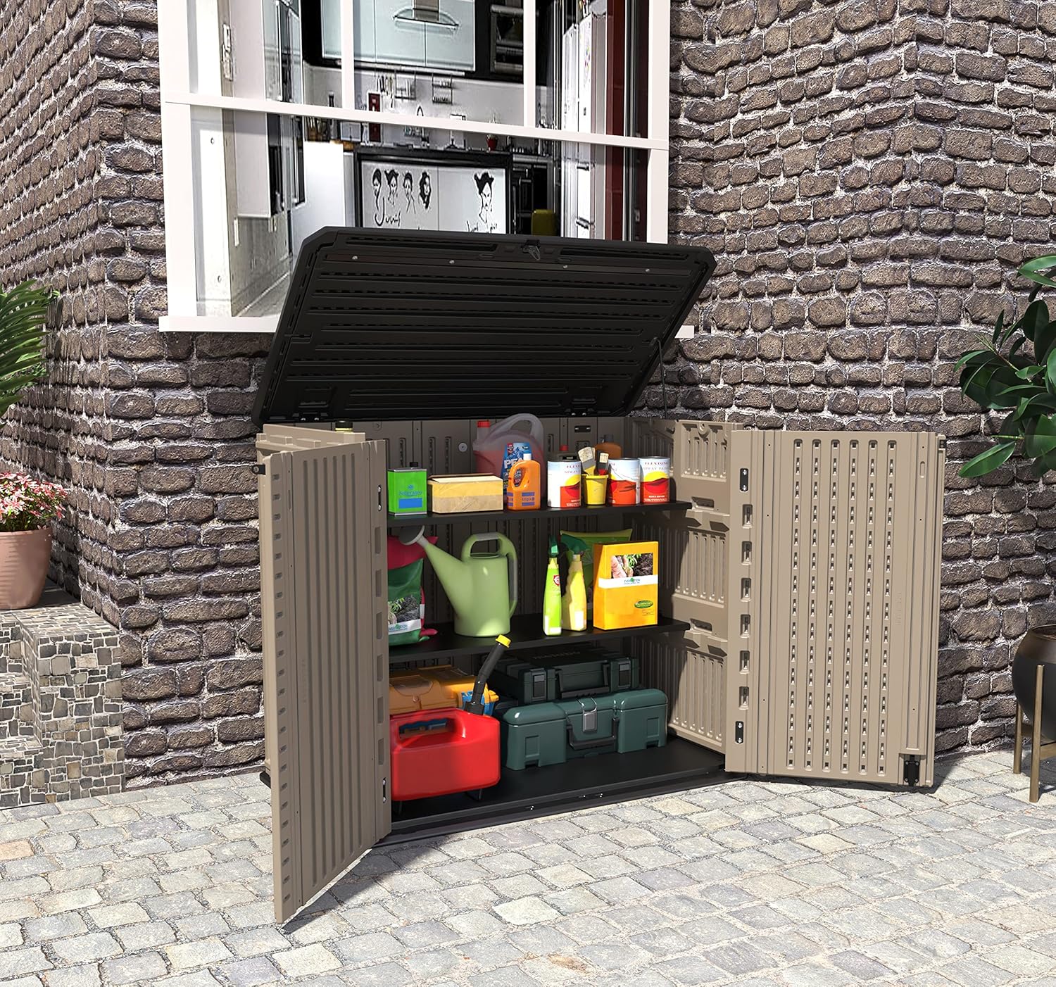 - [DURABLE] : 44 lbs loading capacity per shelf, holds on tools and garden supplies ect.