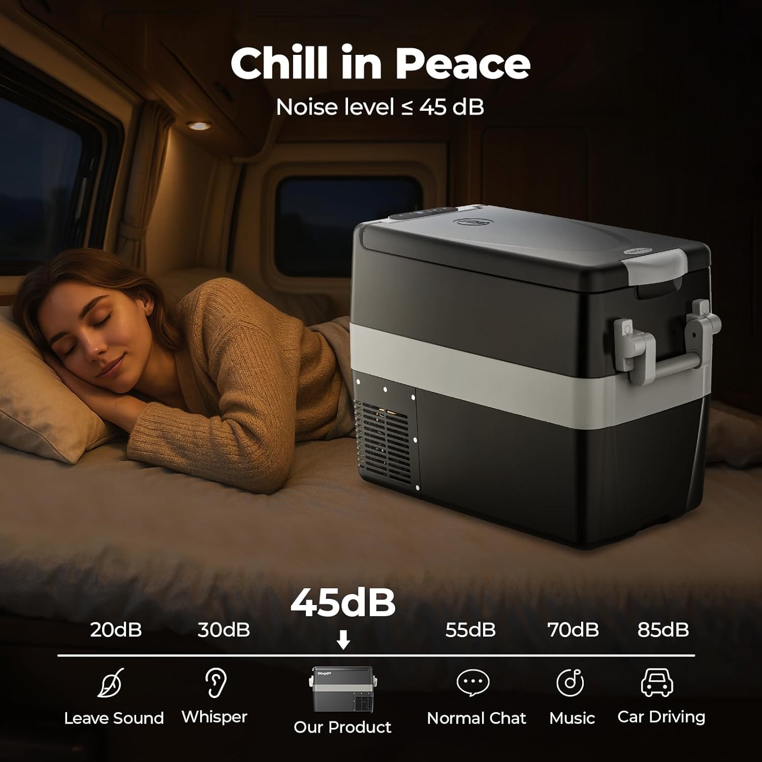 - 45dB Low Noise & Battery Protection: The truck freezer is designed to lower noise to make sure have a good sleep after long driving. The RV fridge/freezer is equipped with a 3-level battery monitor to prevent itself from draining your vehicle's battery