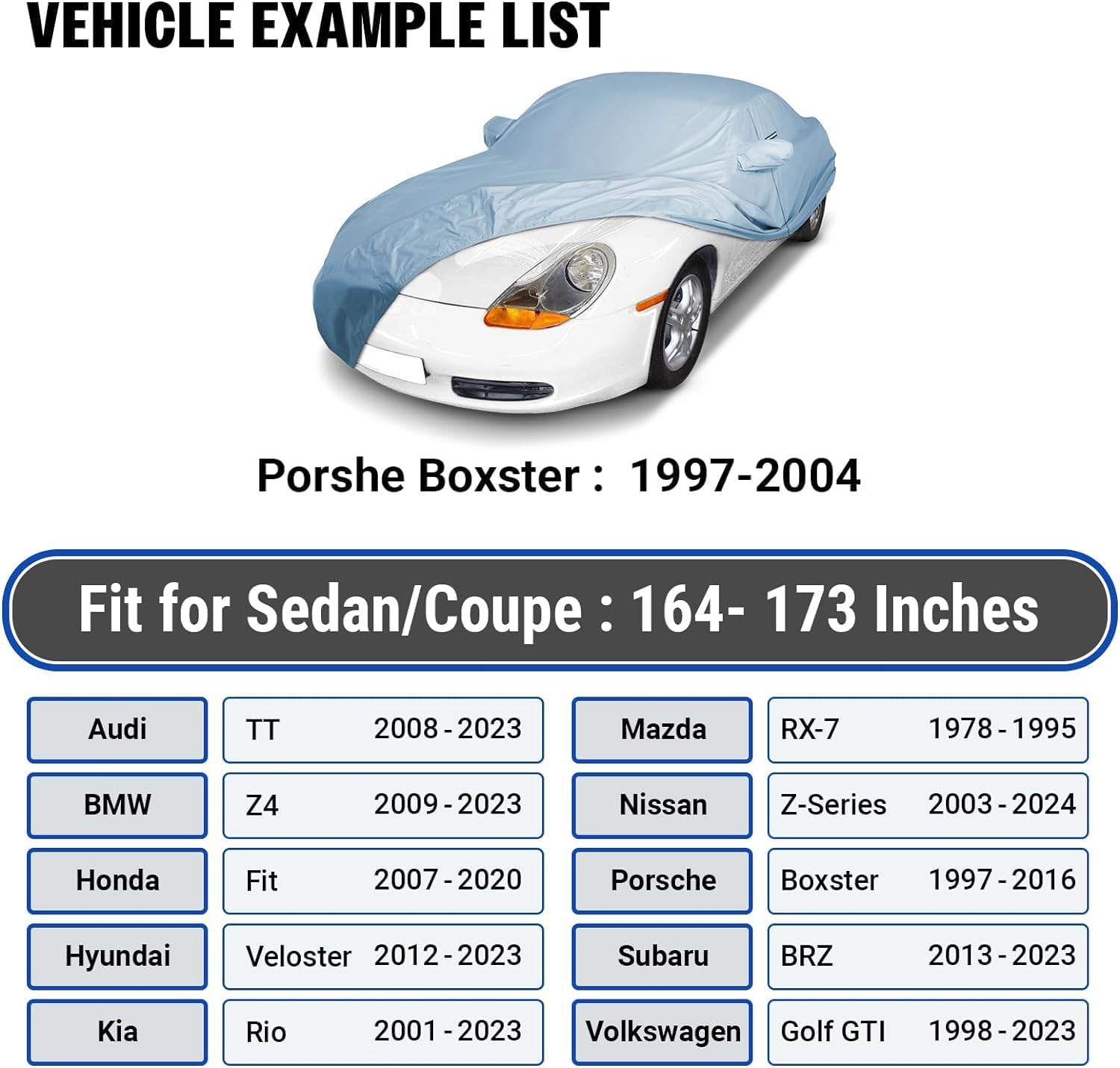 iCarCover 18-Layer Car Cover Waterproof All Weather, Premium Quality Car Covers for Automobiles, UV Protection, GR Supra, LXS SC, Cayman, 718, 911, 350Z, Fits 164-173 Inches