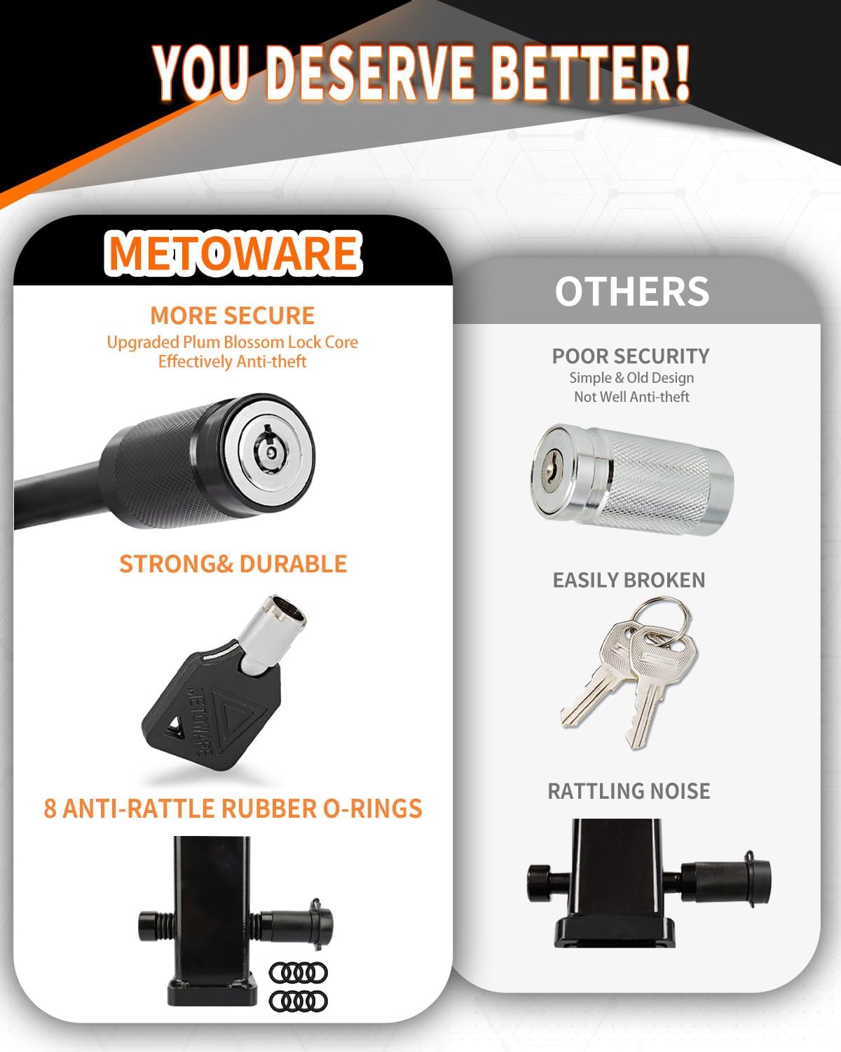 METOWARE Trailer Hitch Lock Hitch Receiver Lock Fits Class III IV and 2" 2-1/2" Receiver with 5/8" Dia 3-1/2” Long Pin and 8 Anti-Rattle Rubber O-Rings, for Trailer Truck Car Boat (1 Pack)