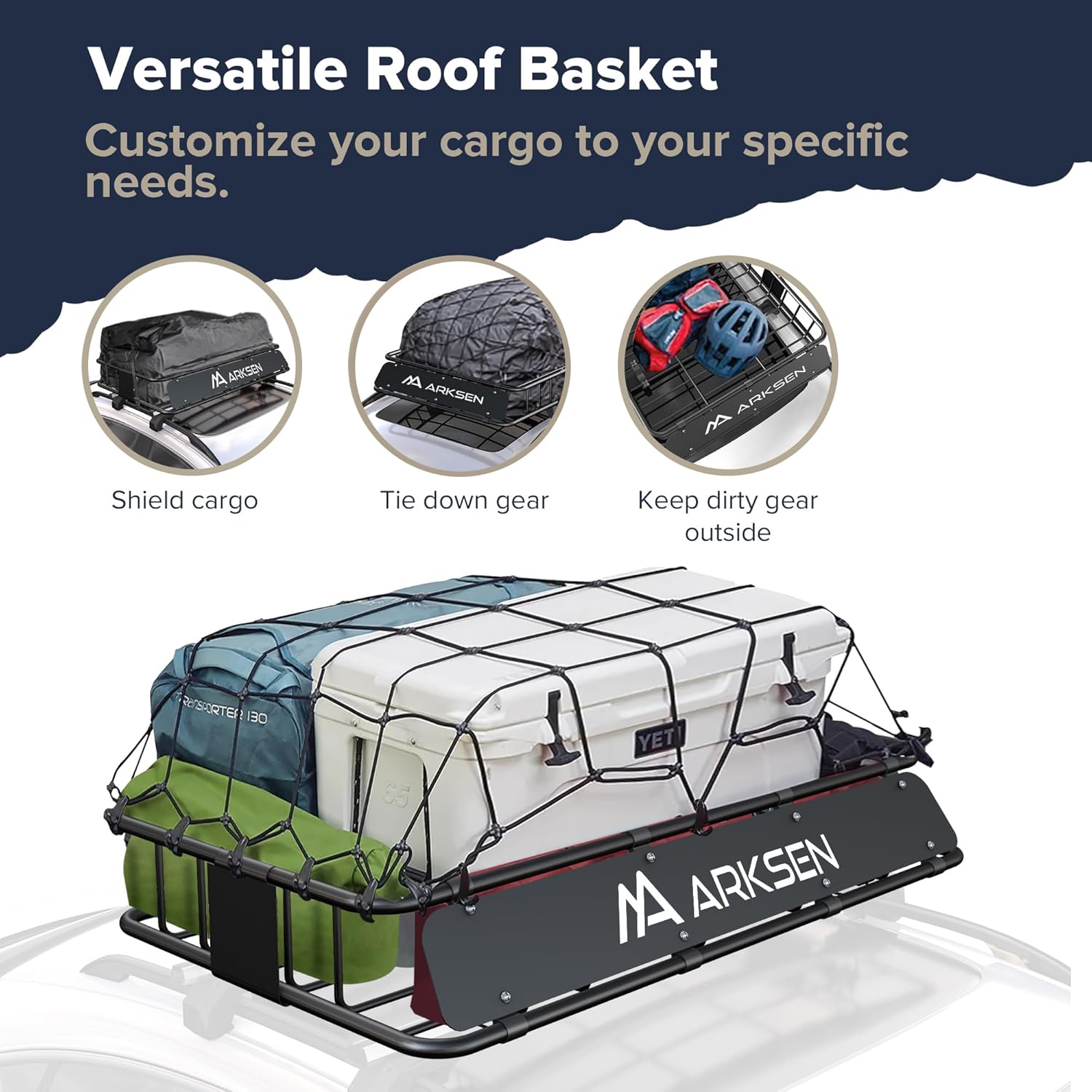 ARKSEN 30 x 50 x 6 Inch Universal Extra Wide 150LB Heavy Duty Roof Rack Cargo with Extension Car Top Luggage Holder Carrier Basket for SUV, Truck, & Car Steel Construction