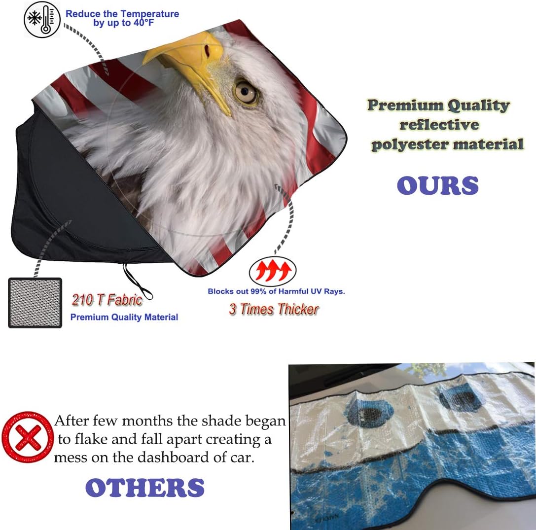 - Reflective American flag car sun shade for summer – Ditch boring shades! Our funny/cute patriotic designs turn your windshield into a mood booster (and a conversation starter). Men& women's cute car accessories.