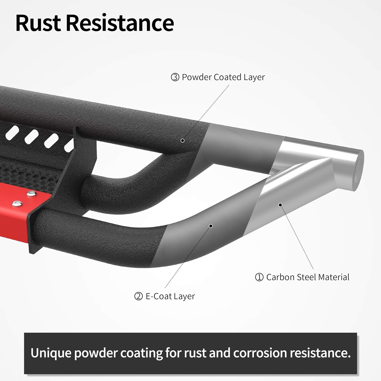 - Strong and Durable:Made with high-strength tubular steel and a triangle structure, the OEDRO Step Rails are tested to withstand up to 550lbs, while the textured powder-coating provides exceptional rust and corrosion resistance. This means you can trust that your step rails will provide a sturdy and reliable platform for you and your passengers.