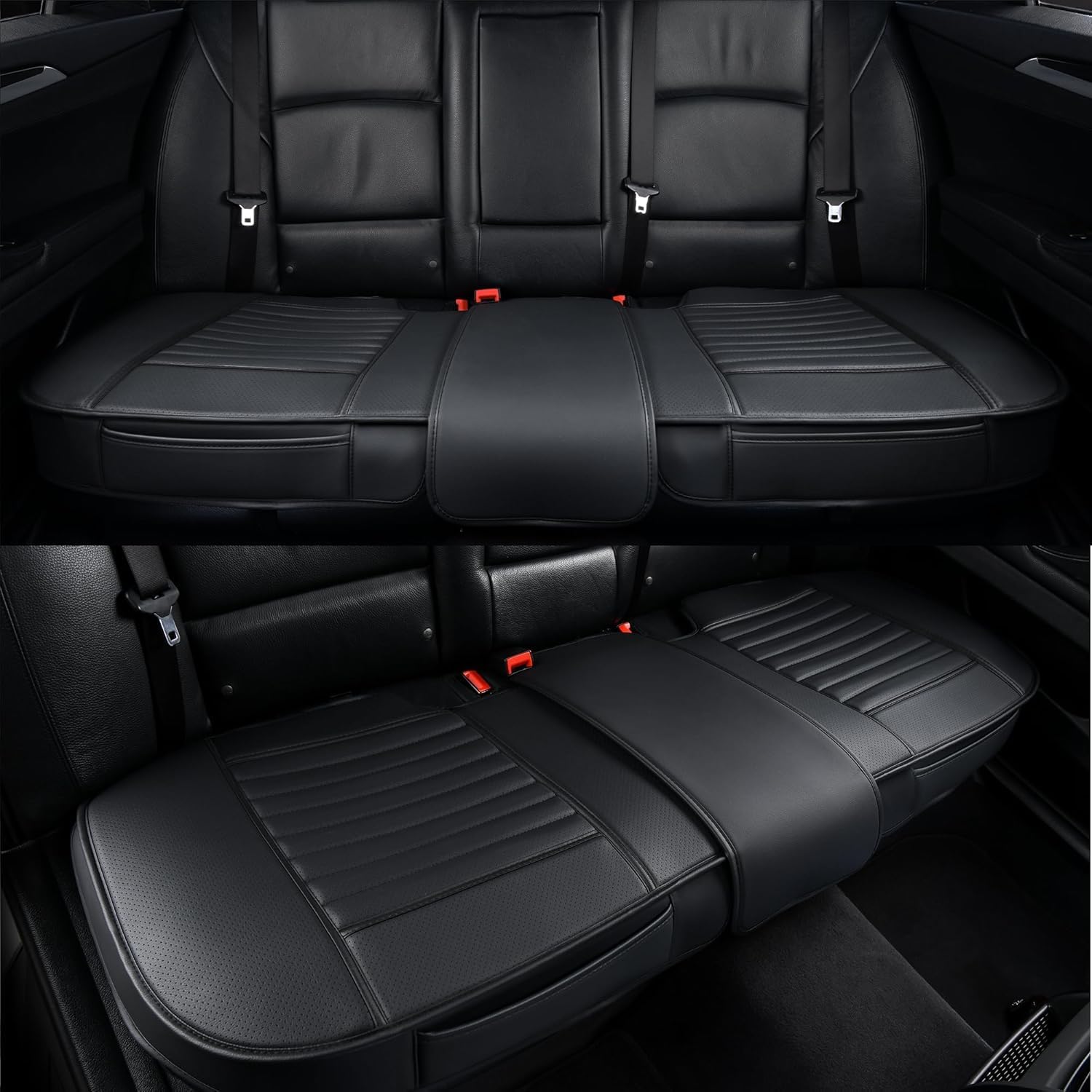 - đźš—Premium PU Leather Material-The auto seat cover is made of high-grade soft PU leather, waterproof, easy to scrub, durable and good breathability. Built-in a layer of highly flexible sponge, four seasons applicable. Maintain the comfort of the buttocks, helps relieve pressure on hips and thighs from driving for a long time. At the bottom of covers is rubber sole which prevent falling off from your car driver seat.