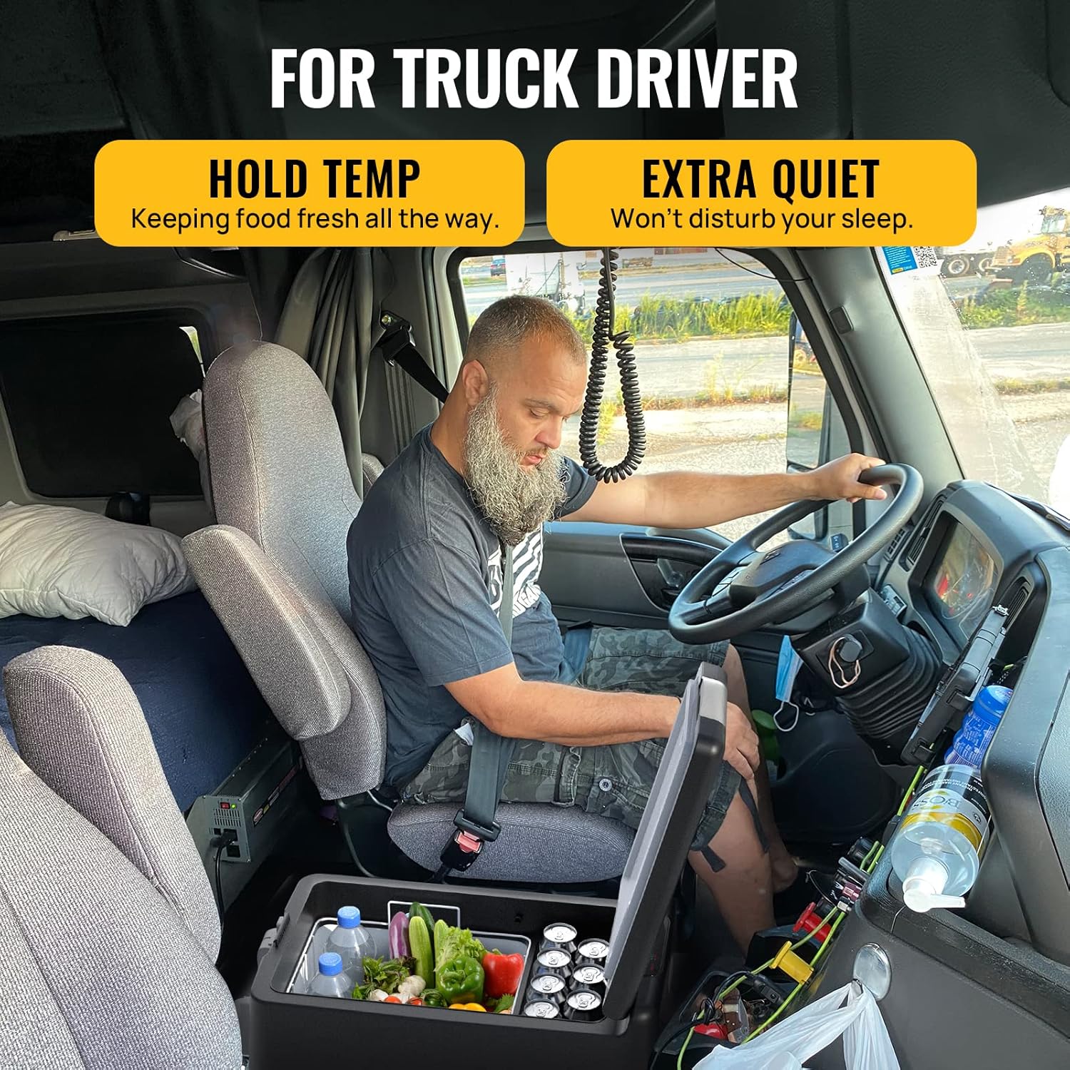 - 53 Qt car refrigerator: This 12v Portable Refrigerator can serve you and your family enough food for one-week trips. With a temp range of -4 ℉ to 50℉, it can be used as a freezer or refrigerator. (Dimension: 25.8*13.6*20.7 in)