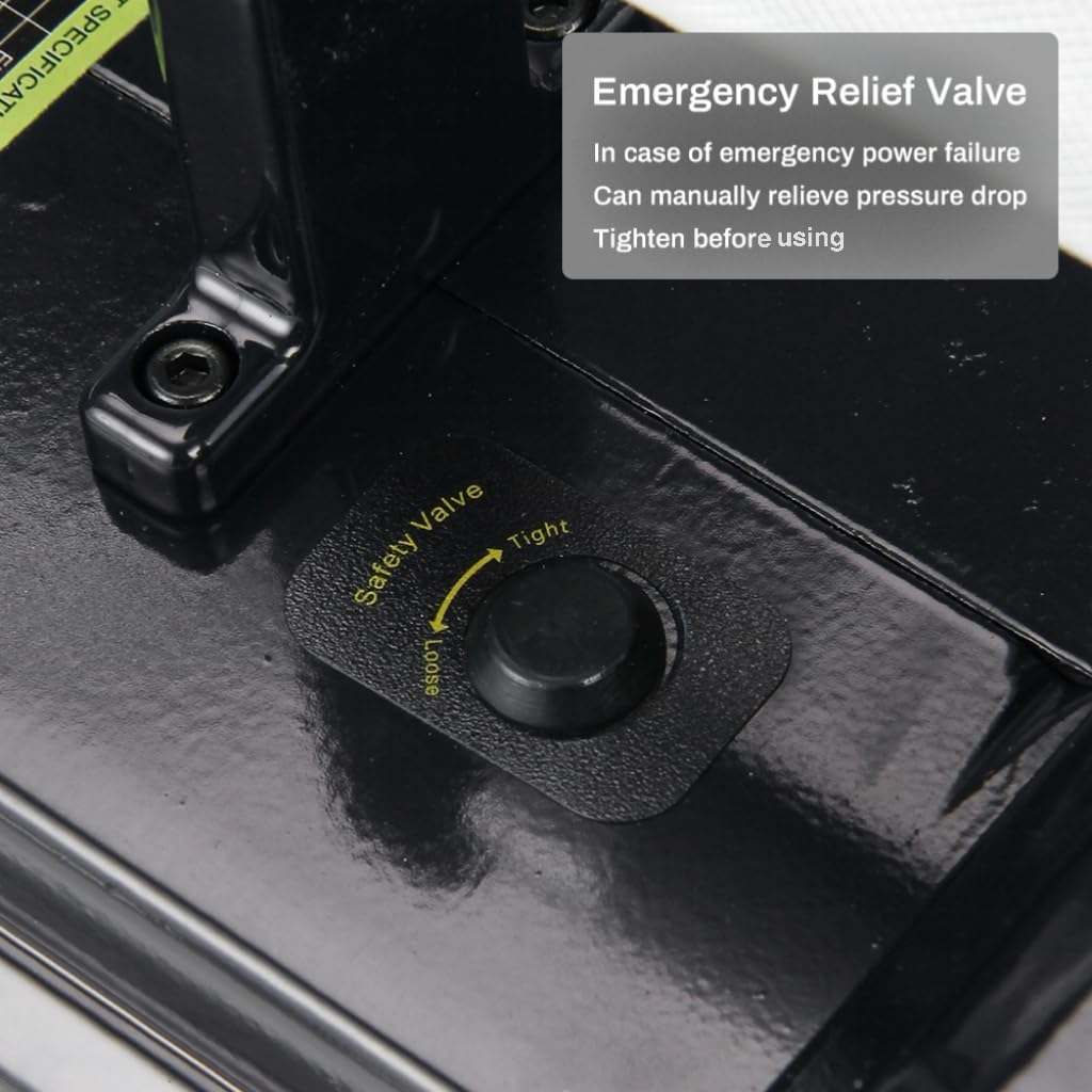 - ăOverload ProtectionăThe 15T electric hydraulic floor jack adopts advanced motor technology, which has the characteristics of low noise, fast speed and stable performance. With overload and overpressure protection and hydraulic manual pressure reducing valve design to ensure safe use.