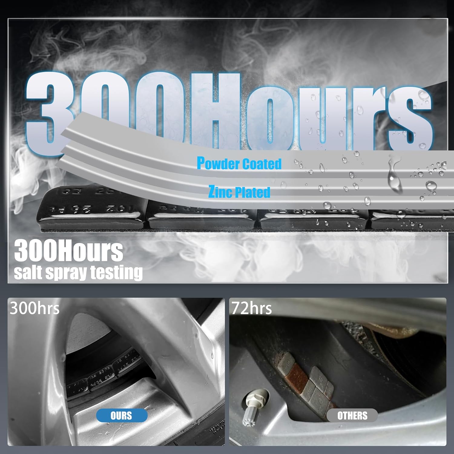 - High quality for durability: The balance are treated with a powder coating to prevent corrosion and rust, and can withstand any weather conditions your car normally experiences. Meanwhile, our wheel weights feature rounded corner stamping to easily contouring any wheel shape and size