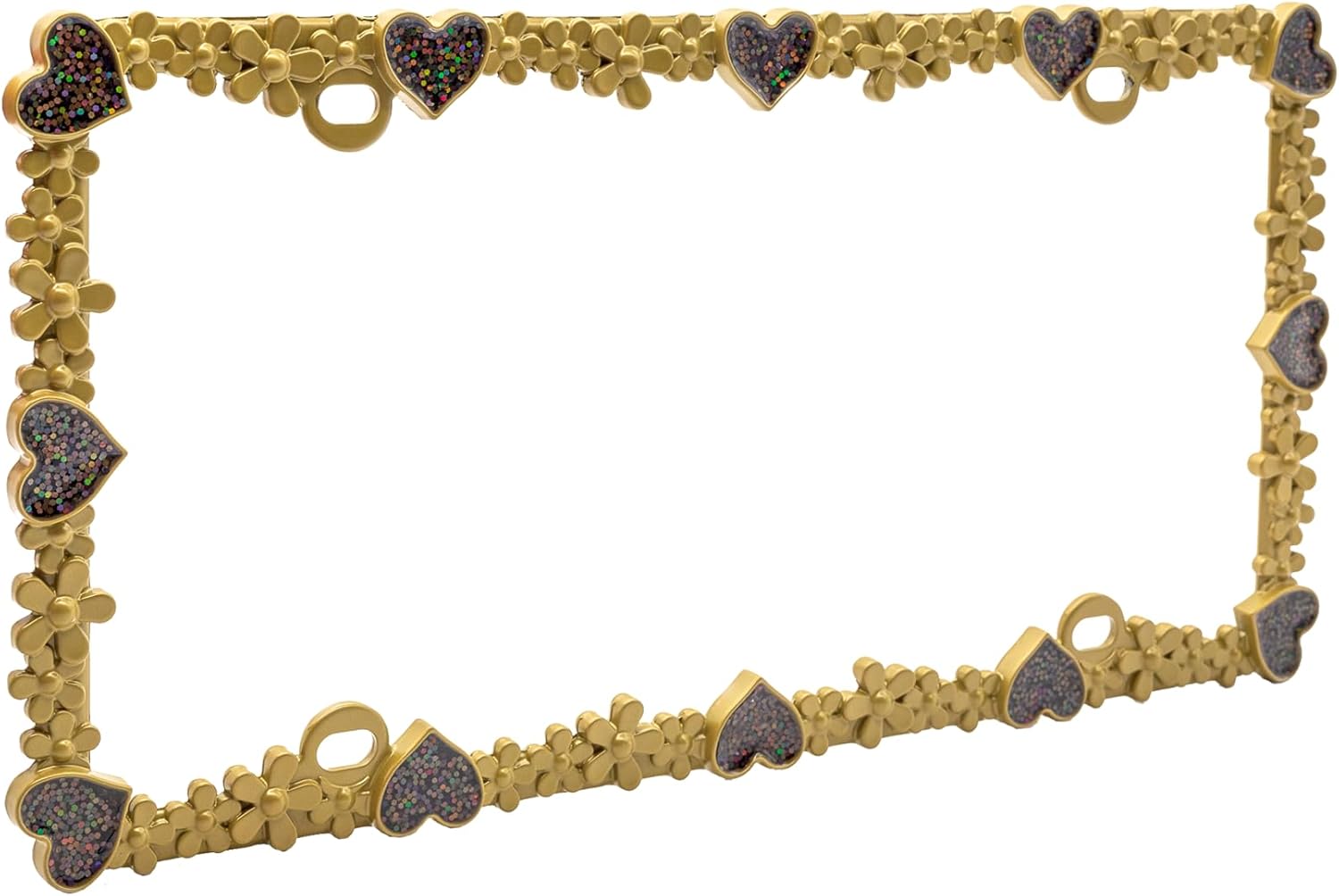 Creathome 3D Shining Daisy Heart License Plate Frame from Pure Zinc Alloy Metal Perfect Plate Holder, Matt Gold with Black Glitter, Luminously Heart